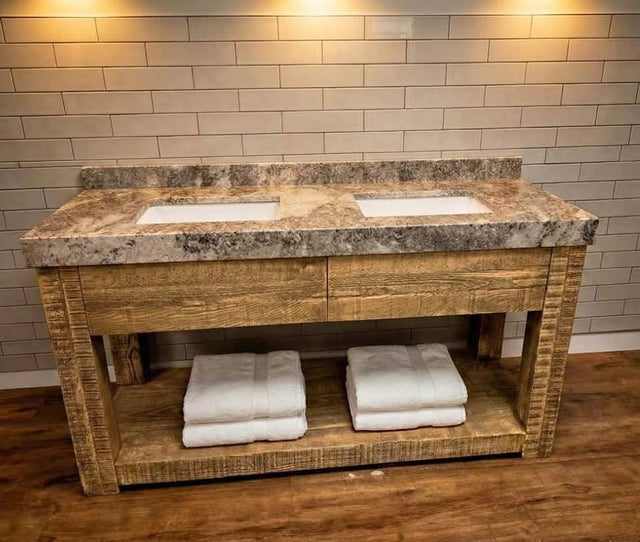 60” Pottery Barn Vanity with Mitered edge top