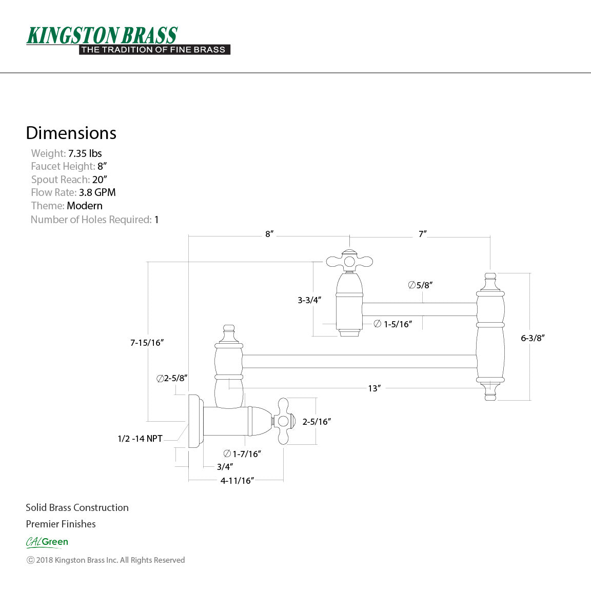 Classical artistry from the late 19th Century to early 20th Century is mirrored beautifully within this faucet's traditional charm. As an excellent tool to quickly, easily, and stylishly fill pots, eliminate strain on your joints. Pot-fillers are useful gadgets placed directly above the stove, providing easily accessible water. The foldable swing arms of this pot filler allow for extendable reach of up to 20" of length and provide long-lasting function due to their sturdy brass construction. Additionally, the dual handles prevent unwanted water spillage while enhancing the traditional theme.