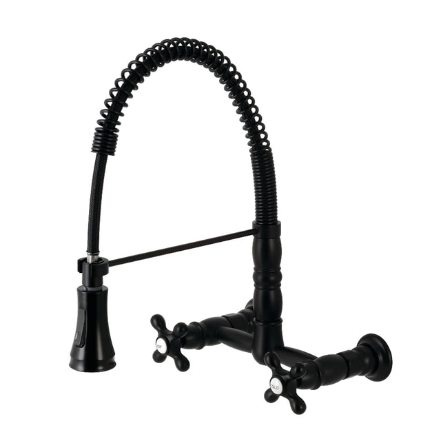 Gourmetier GS1240AX Heritage Two-Handle Wall-Mount Pull-Down Sprayer Kitchen Faucet, Matte Black
