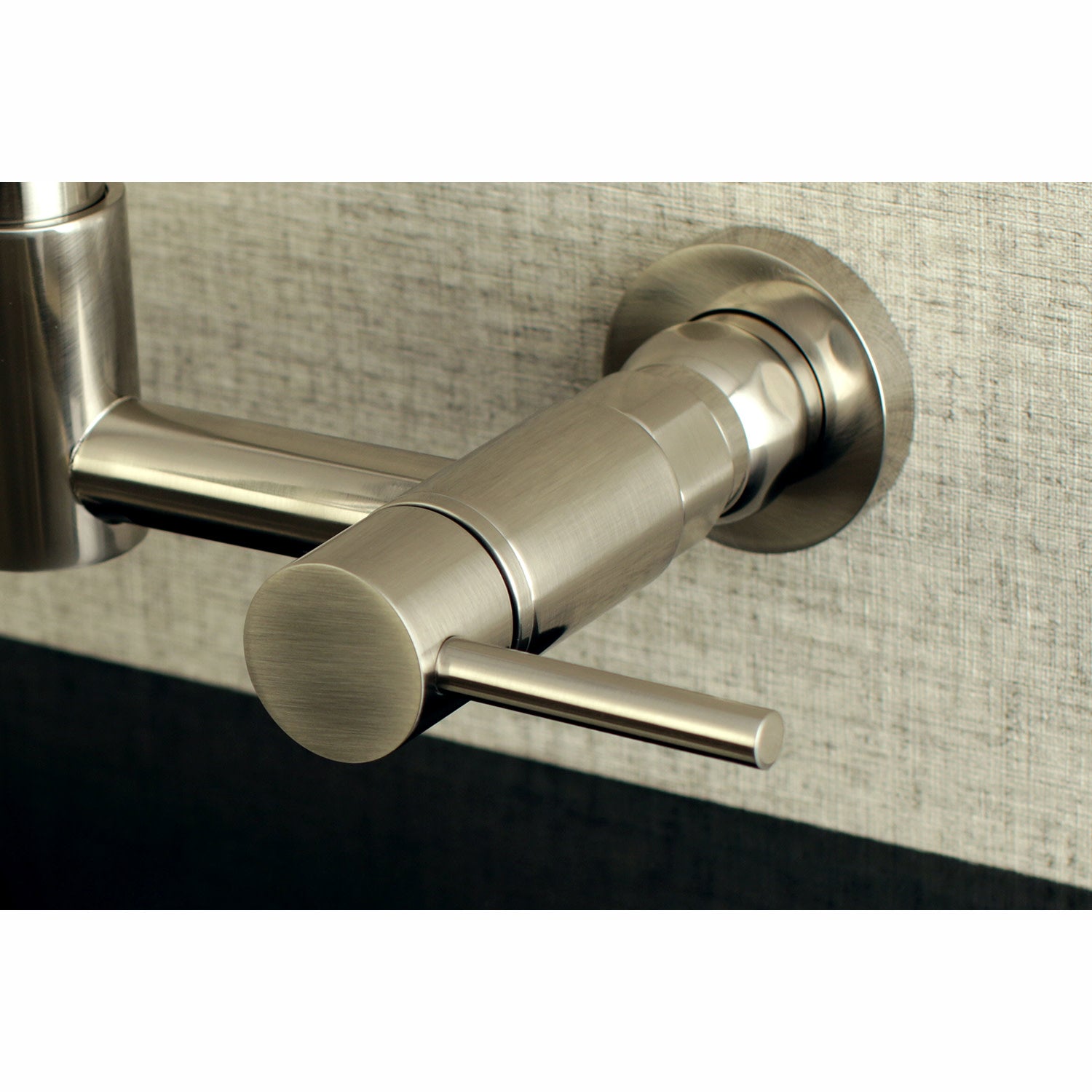 This faucet boasts bold, sleek design with its cylindrical styling. Designed for optimum versatility and functionality, modern day technology is provided for a state-of-the-art product. The Concord 2-handle wall mount pull-down kitchen faucet features a high arching spout to easily clean larger dishes, swivel ability to reach any area in and around your sink, and a dual function pull-down sprayer to tackle tough messes. Matching accessories are available for use.