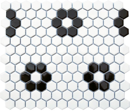 CC Mosaics Black & White Flower Porcelain Mosaic - 1" Hexagon