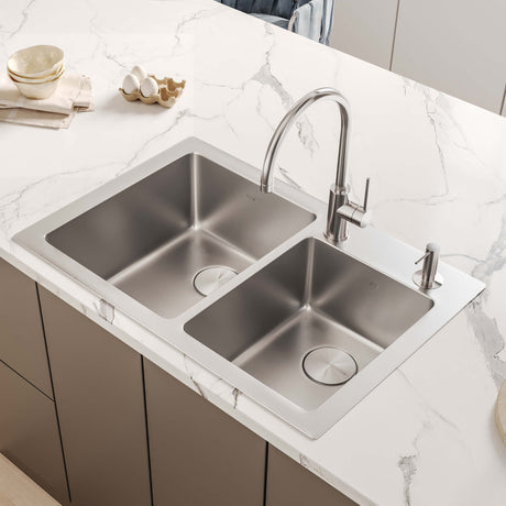 Regular price $34900UnavailableIn stock online (100 Units)Ruvati 31-inch Undermount Kitchen Sink 50/50 Double Bowl 16 Gauge Stainless S...