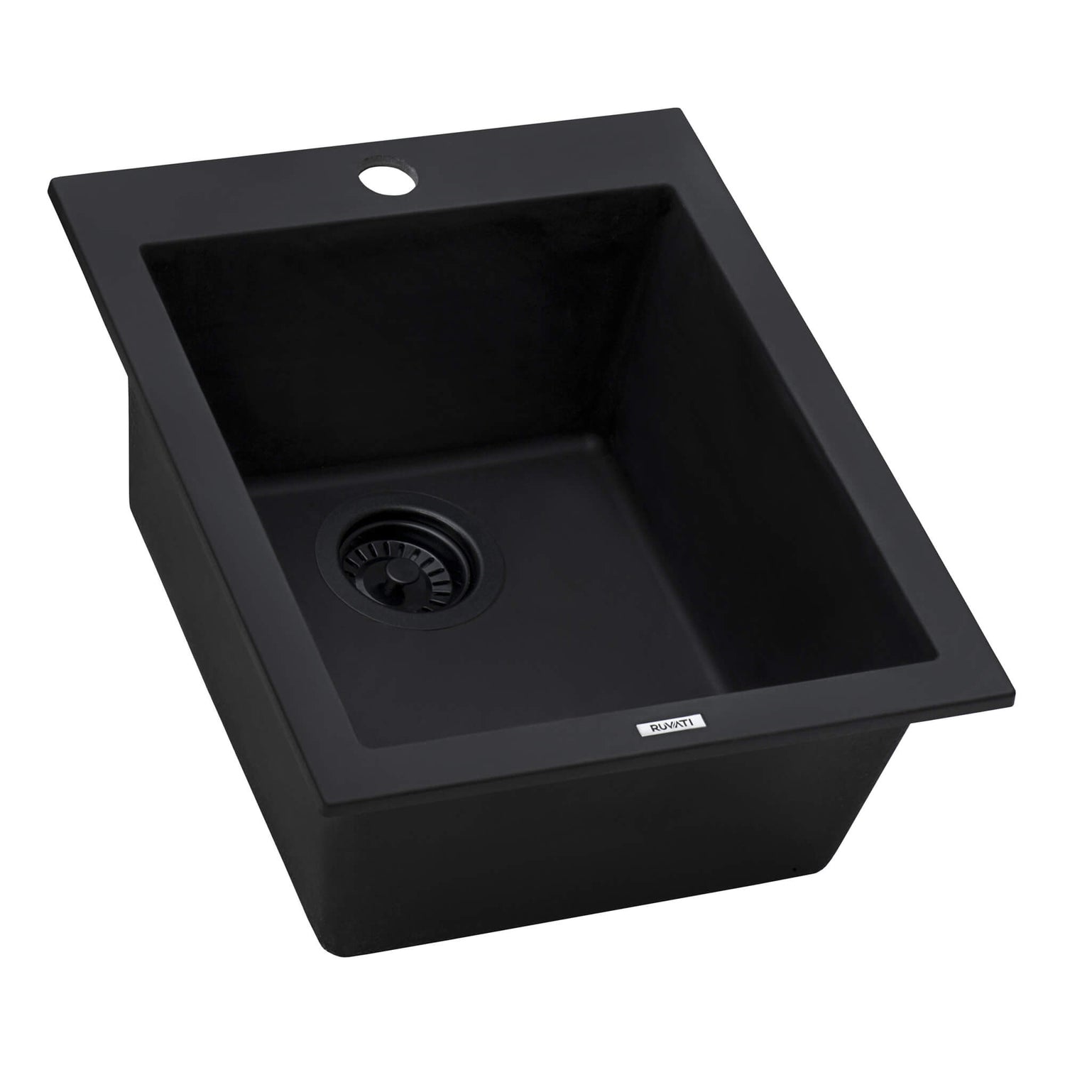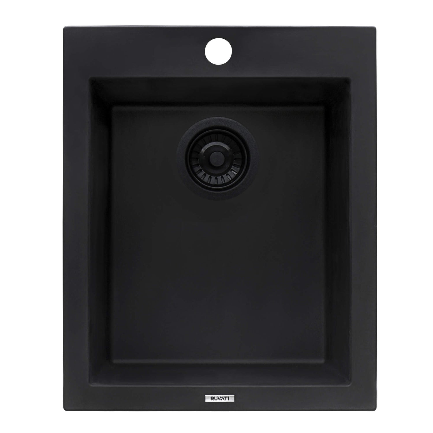 Ruvati 16 x 20 inch epiGranite Drop-in Topmount Granite Composite Single Bowl Kitchen Sink - Midnight Black - RVG1016BK