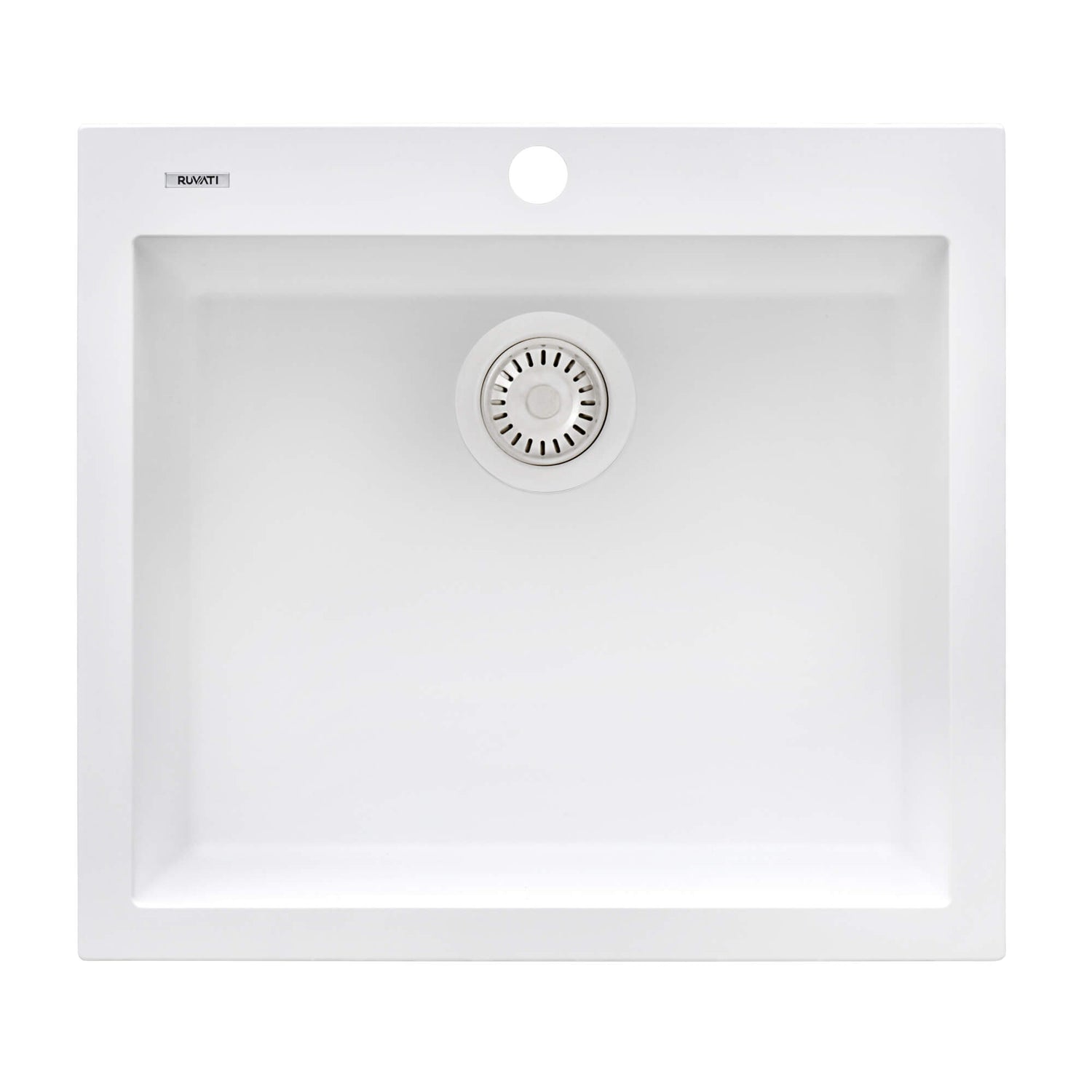 Ruvati 22 x 20 inch epiGranite Drop-in Topmount Granite Composite Single Bowl Kitchen Sink - Arctic White - RVG1022WH