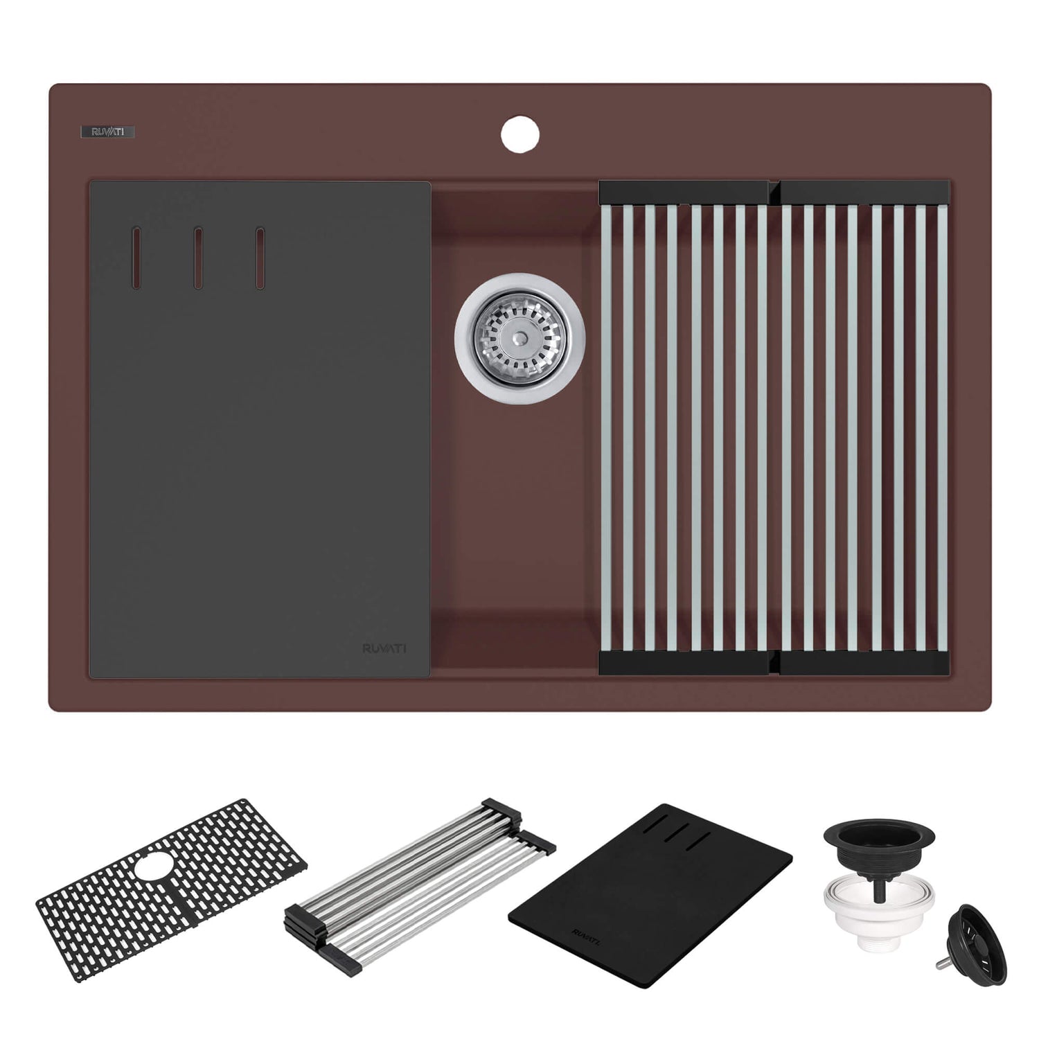 Ruvati 33-inch Granite Composite Workstation Drop-in Topmount Kitchen Sink Espresso - RVG1306ES
