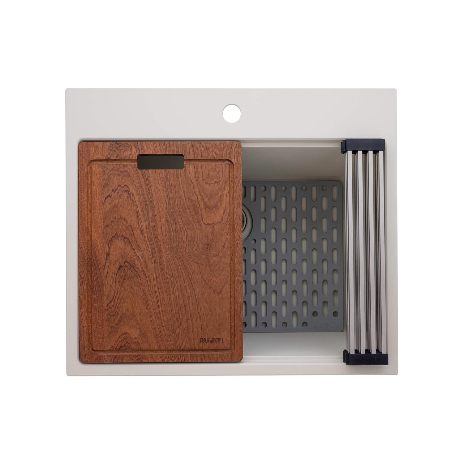 Ruvati 25-inch epiRock Workstation Warm White Topmount Laundry Sink - RVG1321WB