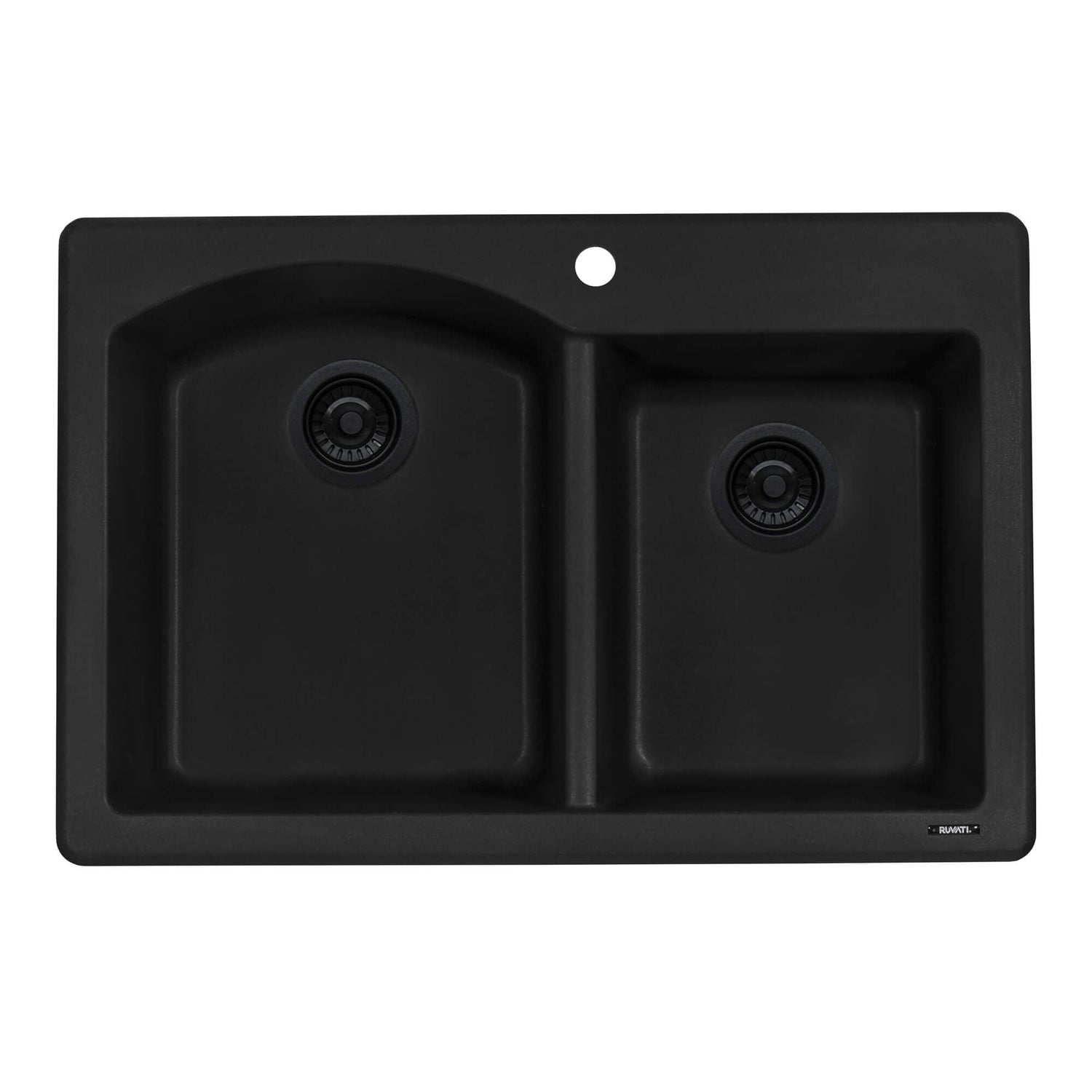 Ruvati 33 x 22 inch epiGranite Dual-Mount Granite Composite Double Bowl Kitchen Sink - Midnight Black - RVG1344BK