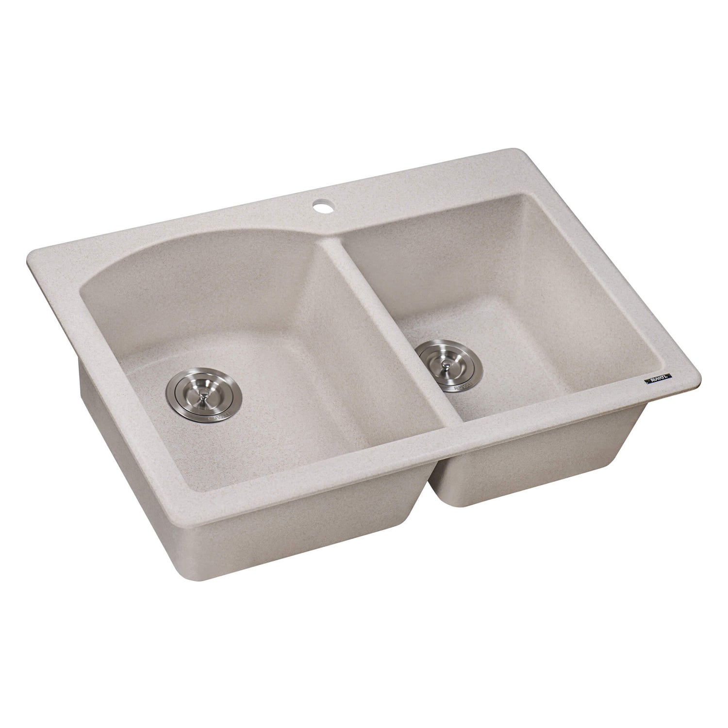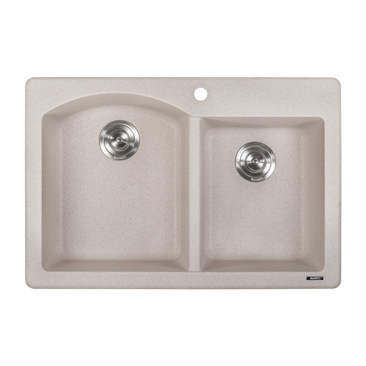 Ruvati 33 x 22 inch epiGranite Dual-Mount Granite Composite Double Bowl Kitchen Sink - Caribbean Sand - RVG1344CS