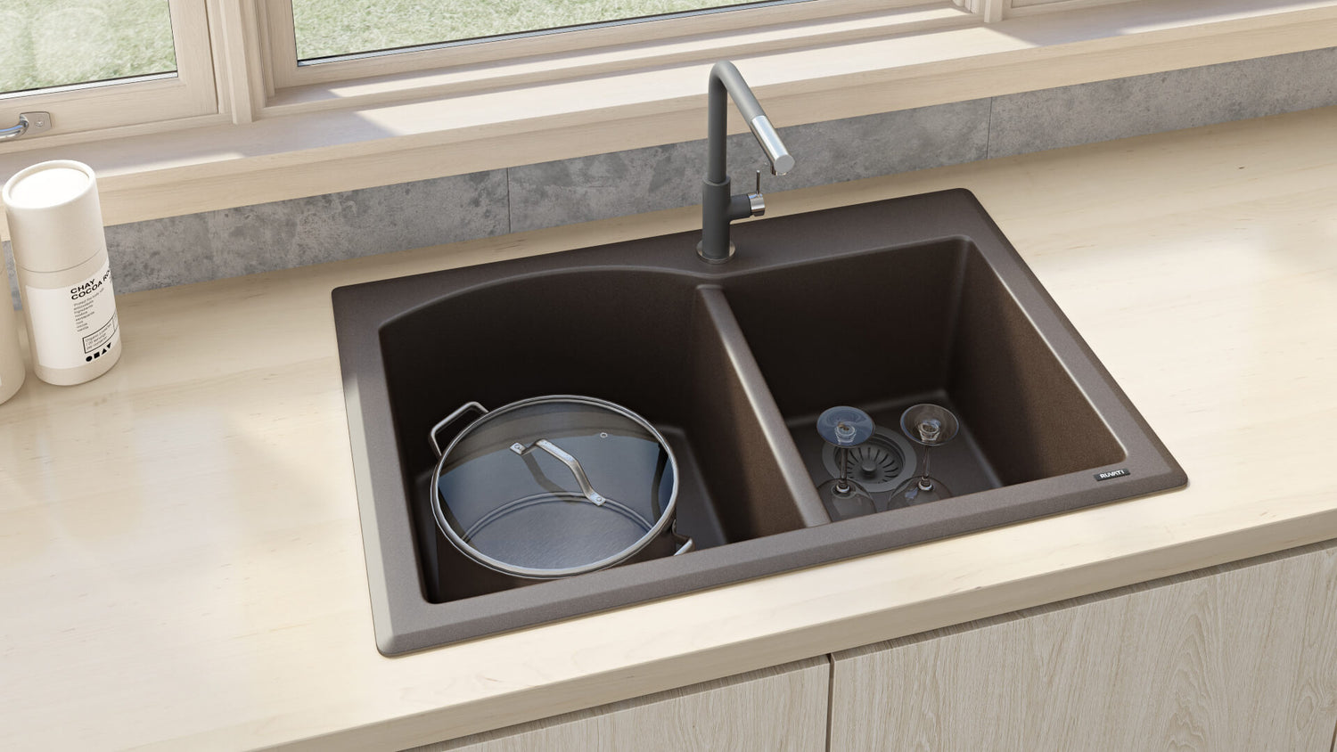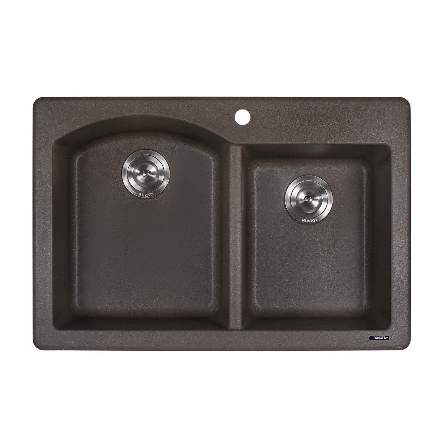 Ruvati 33 x 22 inch epiGranite Dual-Mount Granite Composite Double Bowl Kitchen Sink - Espresso Brown - RVG1344ES