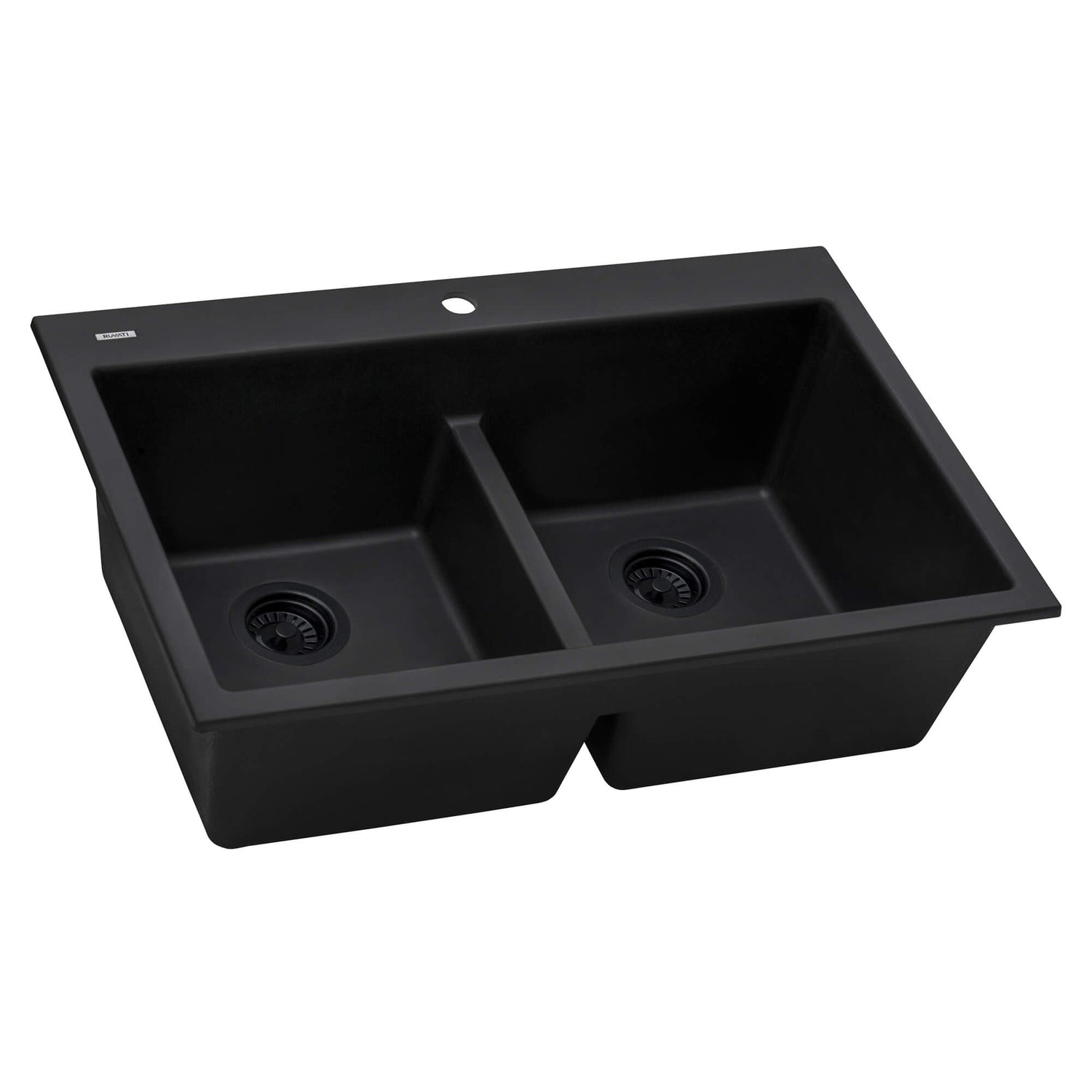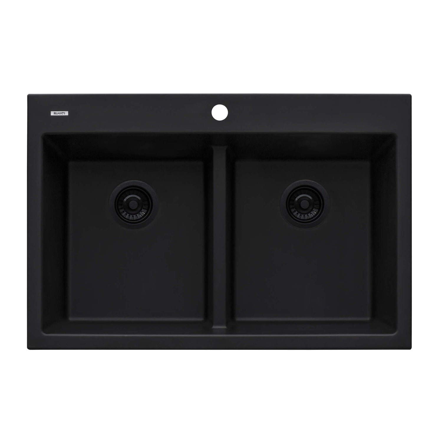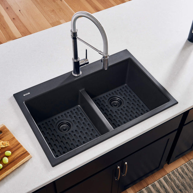 Ruvati 33 x 22 inch epiGranite Drop-in TopMount Granite Composite Double Bowl Low Divide Kitchen Sink - Midnight Black - RVG1385BK