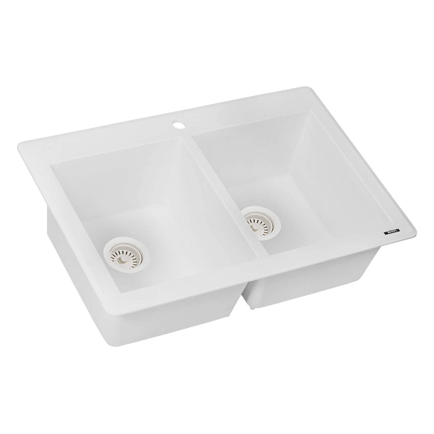 Ruvati 33 x 22 inch epiGranite Topmount Granite Composite Double Bowl Kitchen Sink - Arctic White - RVG1388WH