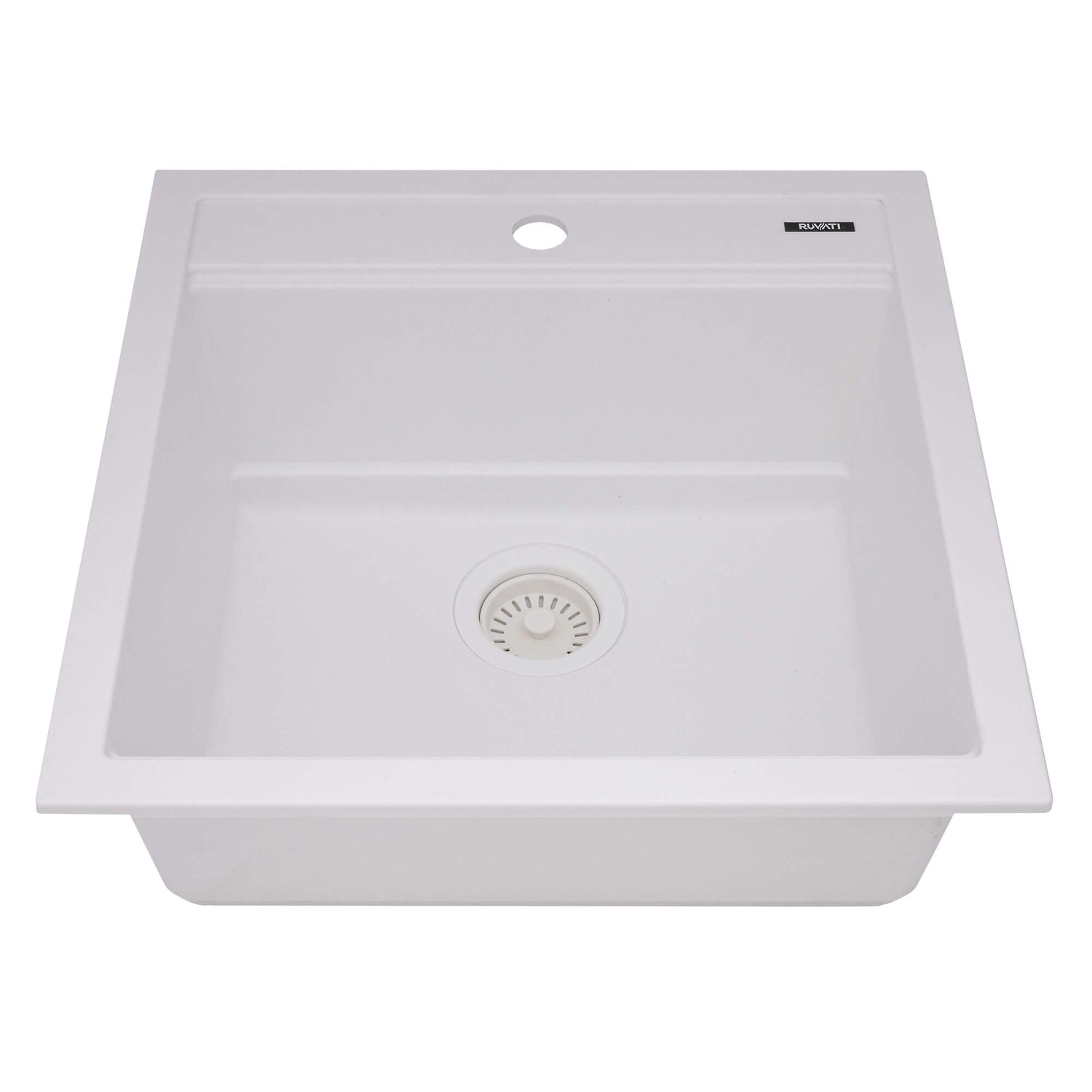 Ruvati 20-inch epiCube Granite Composite Workstation Drop-in Topmount Wet Bar Prep Sink Matte White - RVG1620WH