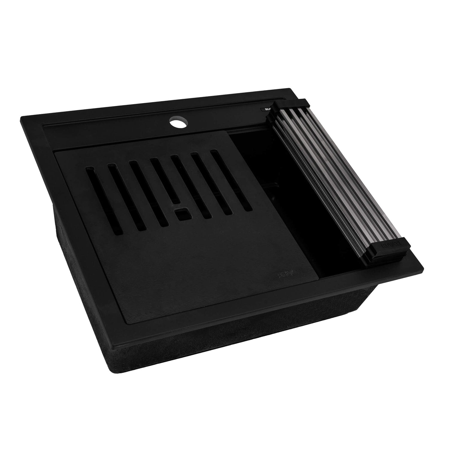 Ruvati 23-inch epiCube Granite Composite Workstation Matte Black Drop-in Topmount Wet Bar Prep Sink - RVG1622BK