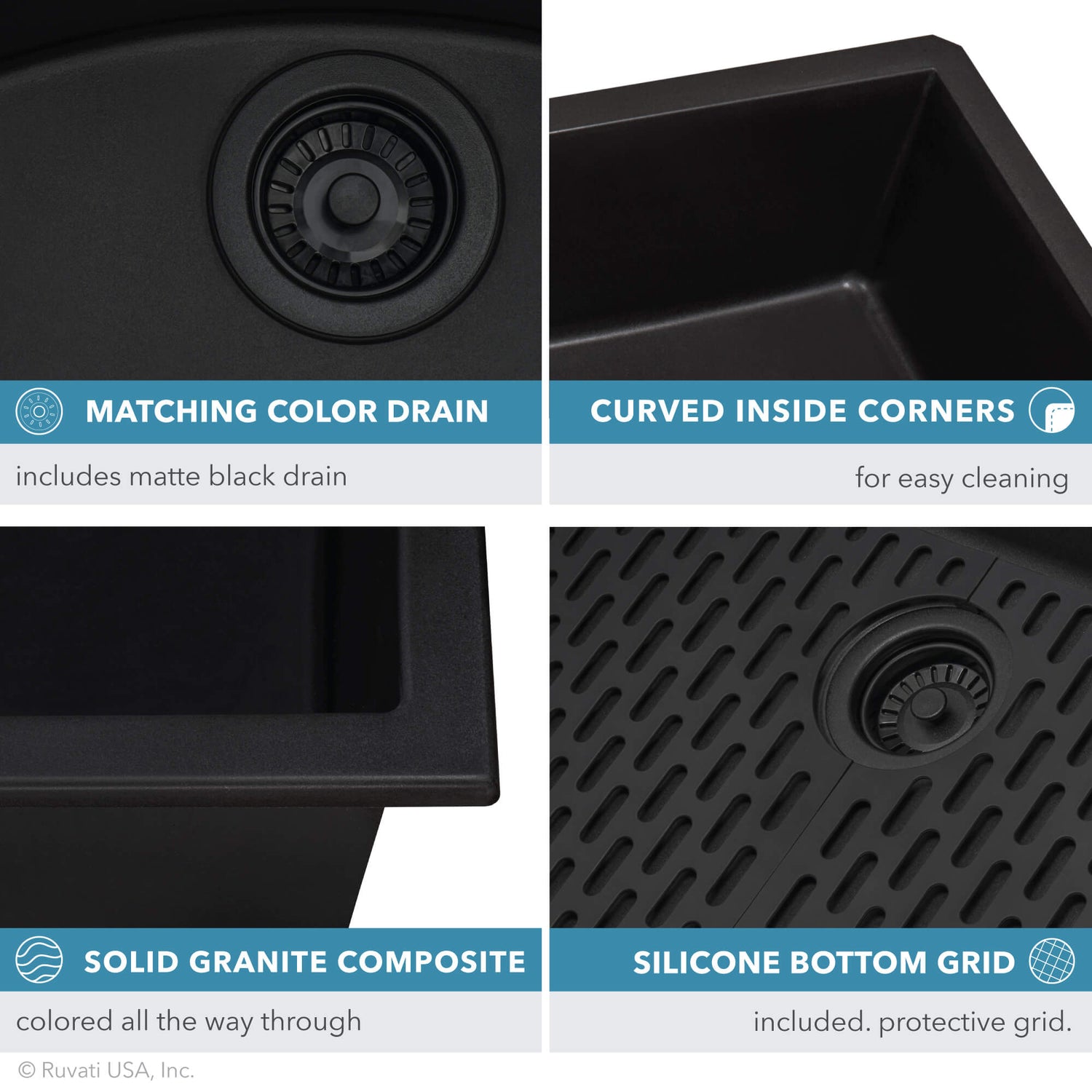 Ruvati 27 x 18 inch Granite Composite Undermount Single Bowl Kitchen Sink - Midnight Black - RVG2027BK