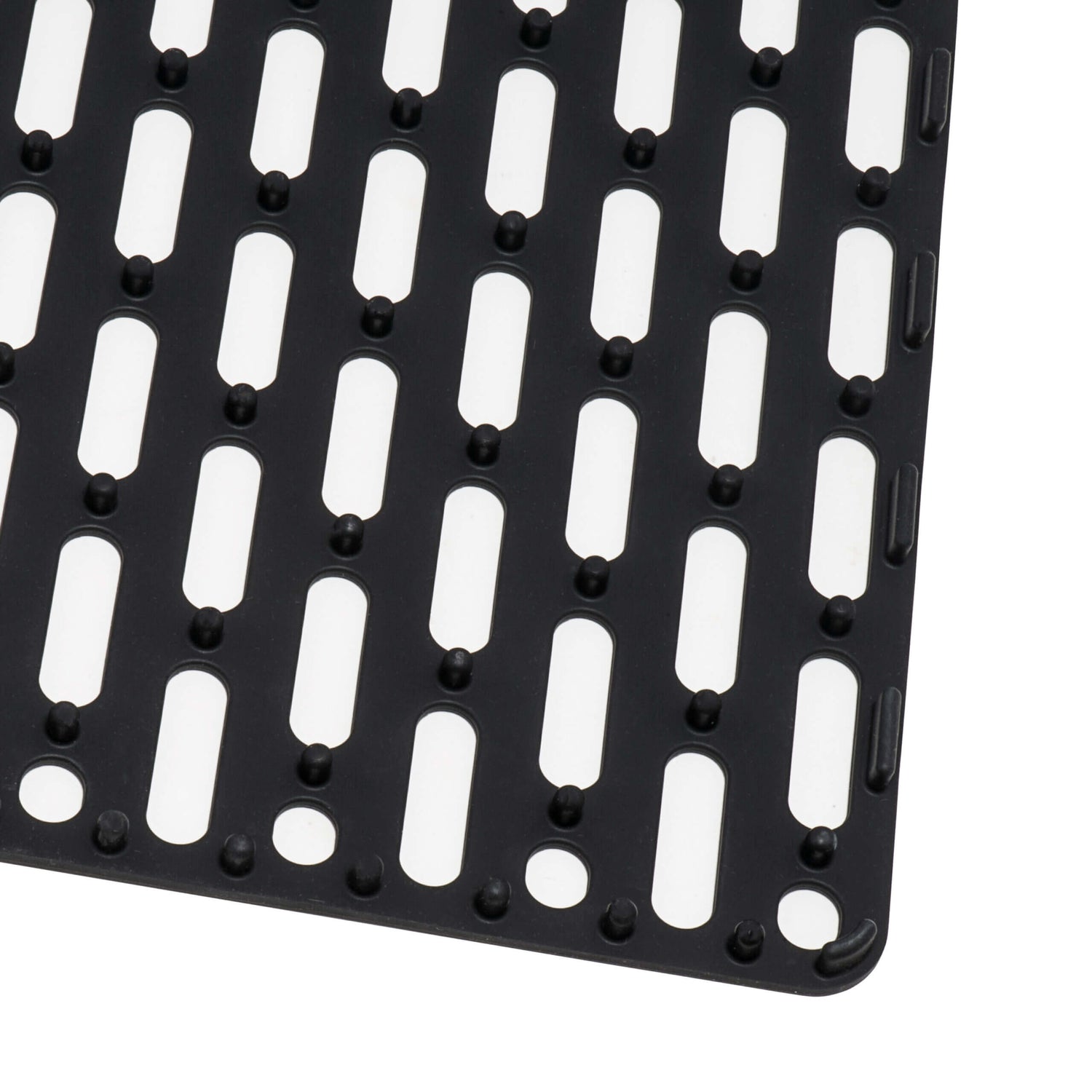 - INCLUDED IN BOX: Sink, silicone rinse grid, matching black strainer drain assembly, cutout template, mounting clips, installation guide.