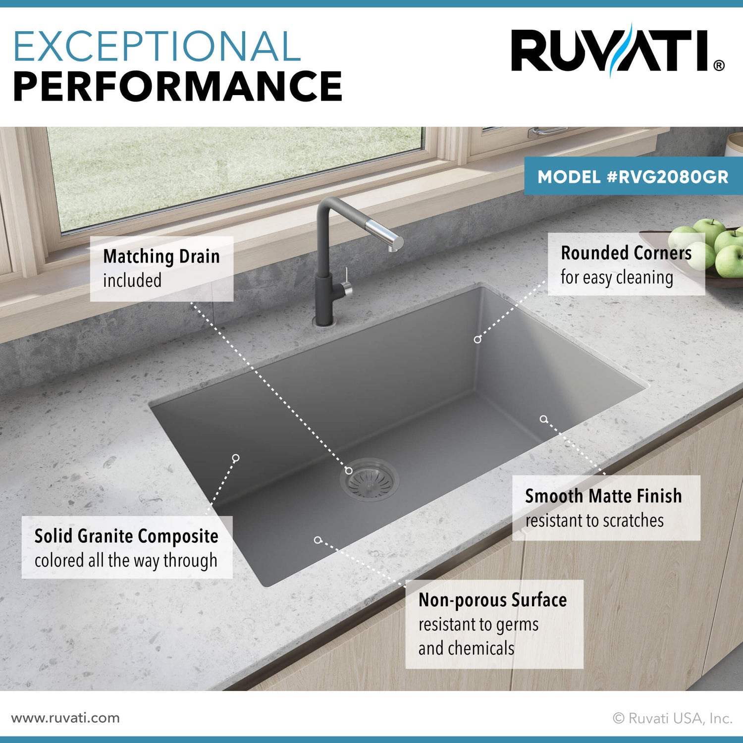 Ruvati 32 x 19 inch Granite Composite Undermount Single Bowl Kitchen Sink - Silver Gray - RVG2080GR