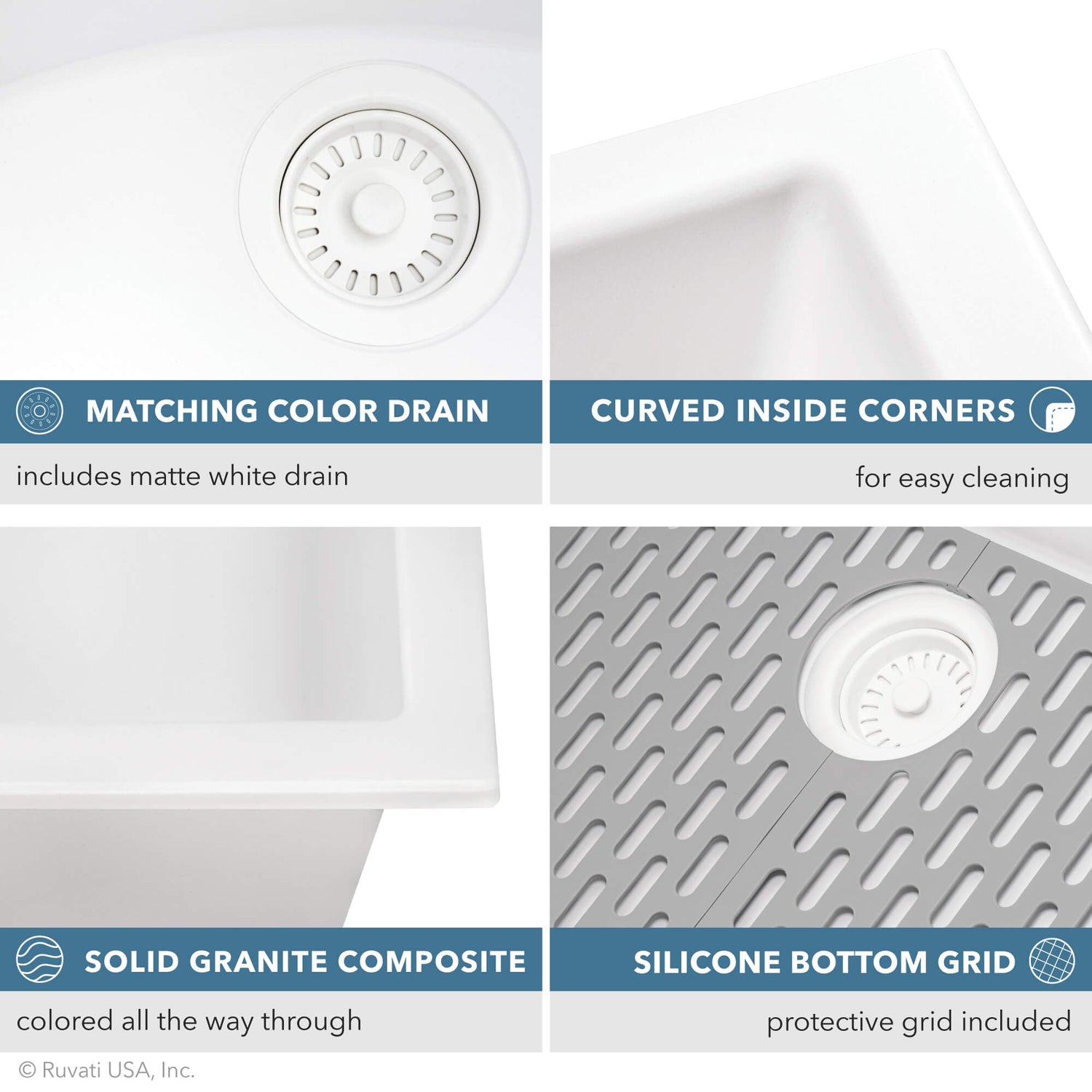 Ruvati 32 x 19 inch Granite Composite Undermount Single Bowl Kitchen Sink - Arctic White - RVG2080WH