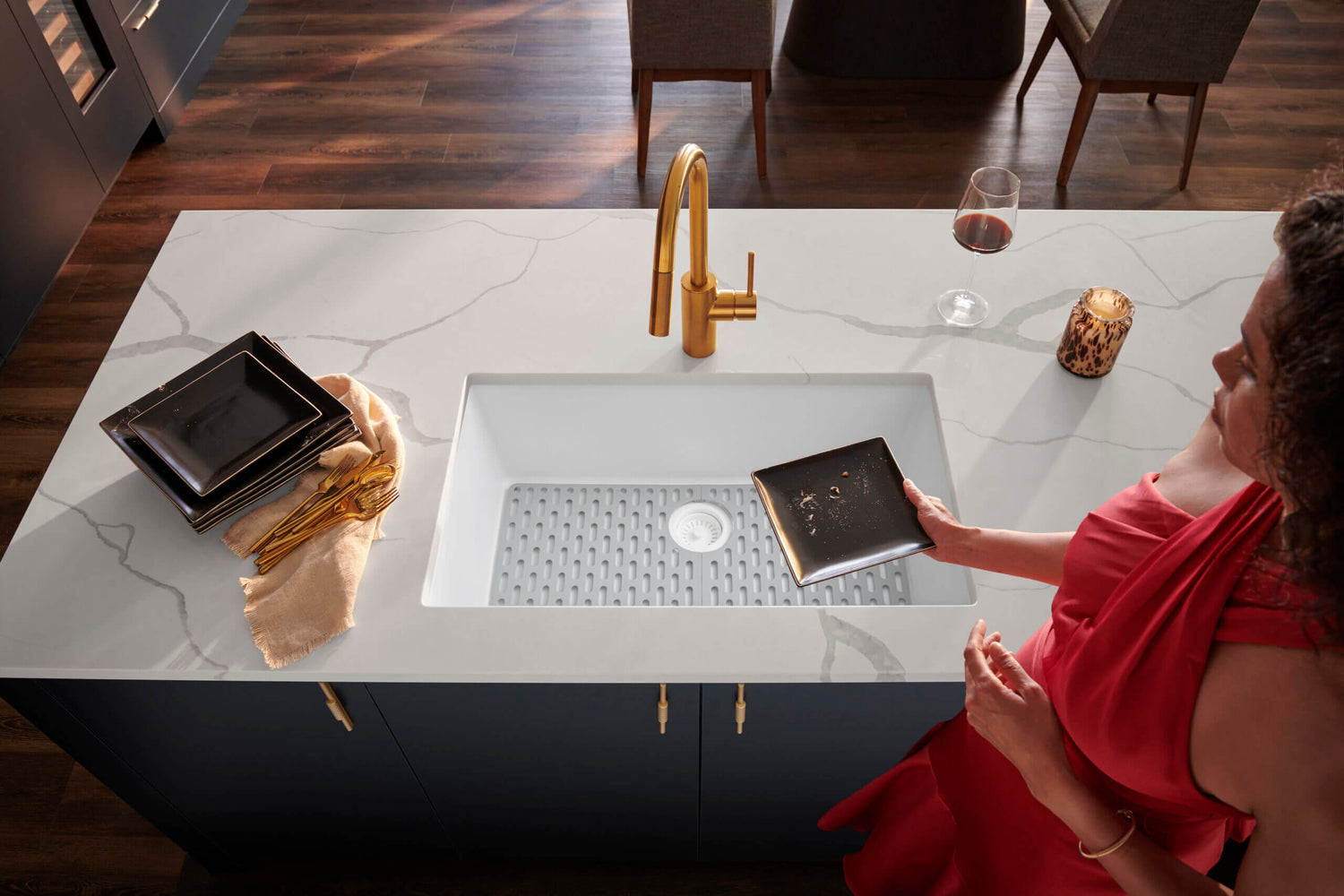 • INCLUDED PATENT-PENDING SILICONE BOTTOM GRID: Protects the bottom of the sink from impact and allows water to flow freely.