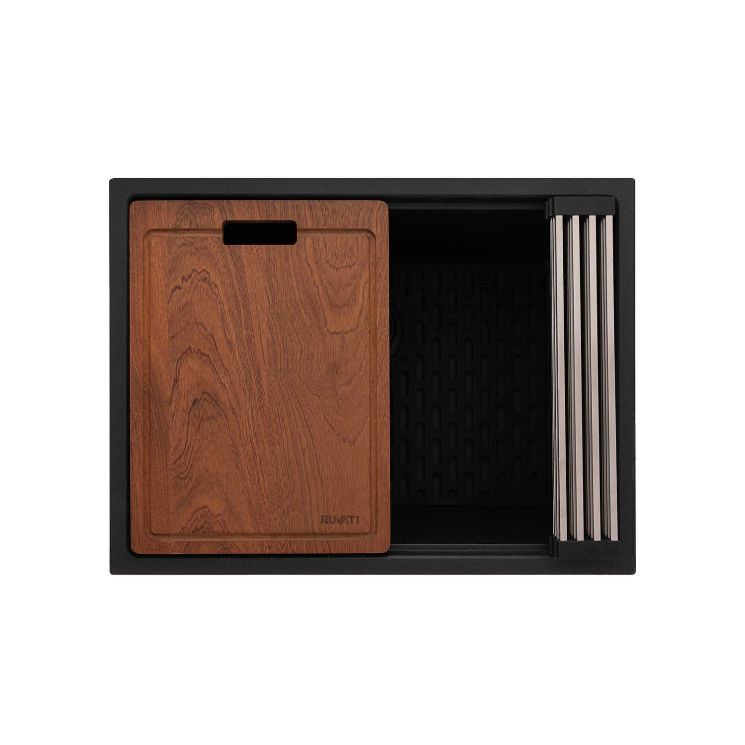 Ruvati 25-inch epiRock Workstation Charcoal Black Undermount Laundry Sink - RVG2321CK