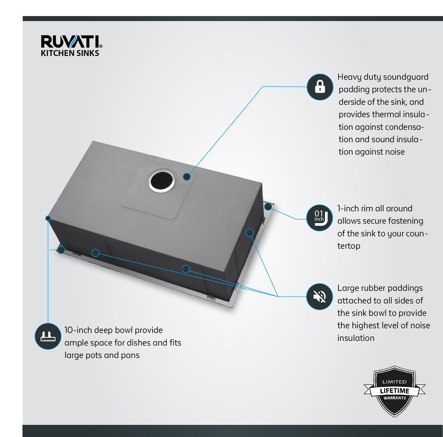 With a thick, solid rim and deep, square bowls, the Tirana collection from Ruvati will easily bring your design dreams to life. Made of premium, commercial-grade 16-gauge stainless steel, each sink is extremely durable and easy to clean. Featuring sharp corners for a modern look and pre-drilled holes for potential faucet or soap dispenser holes, the Tirana collection is exactly what you've been searching for when it comes to the perfect kitchen.