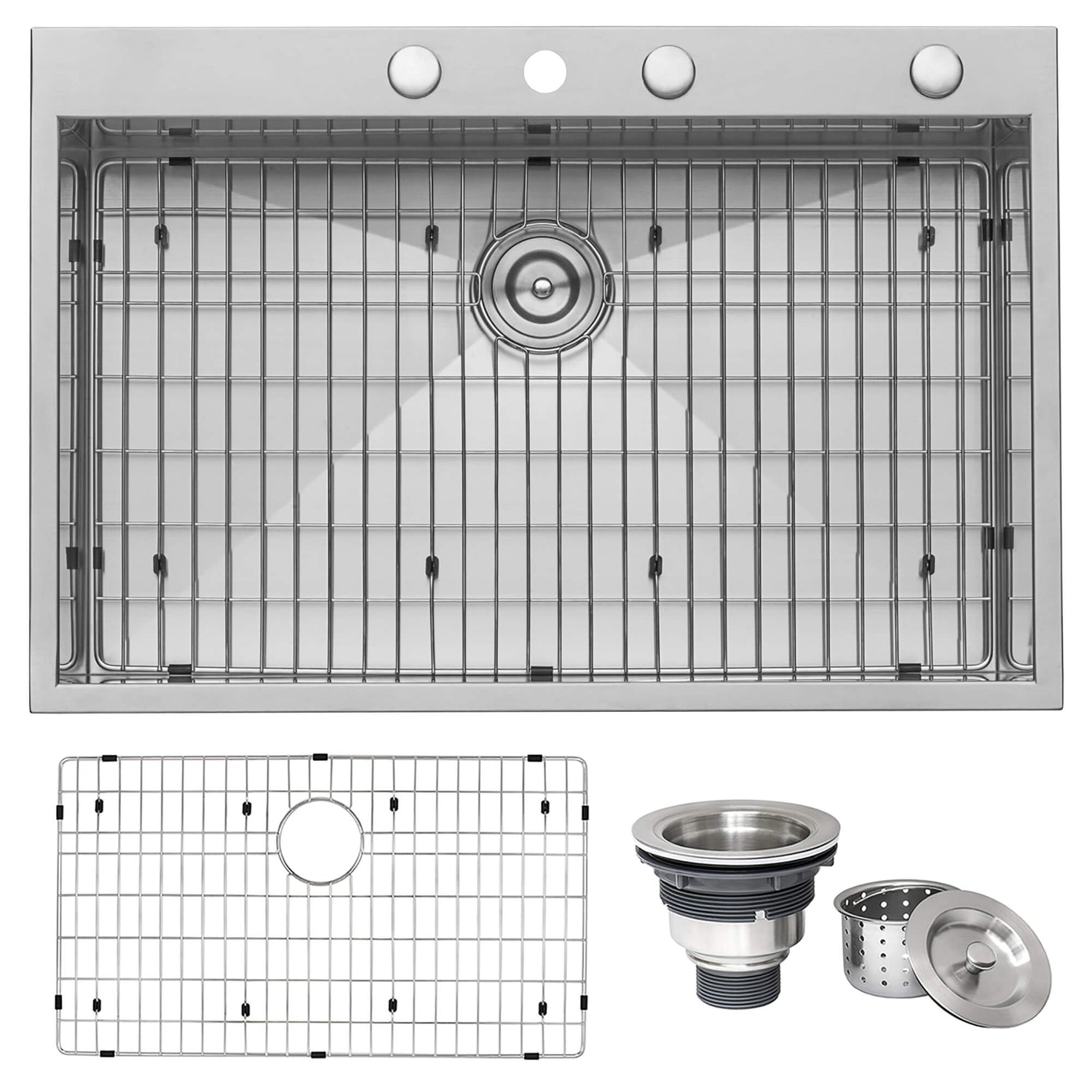 Ruvati 33 x 22 inch Drop-in Topmount 16 Gauge Zero Radius Stainless Steel Kitchen Sink Single Bowl - 4 holes - RVH8001
