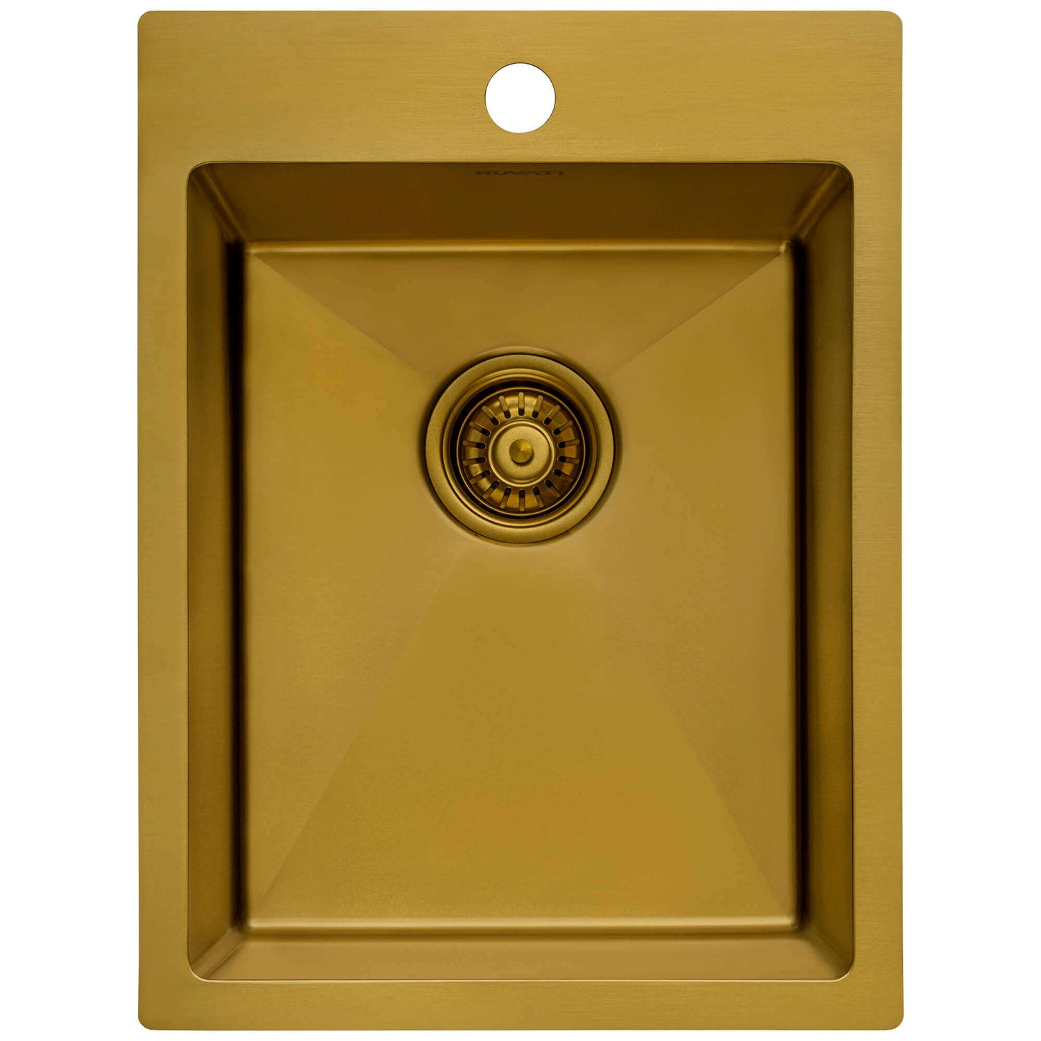 Ruvati 15 x 20 inch Polished Brass Matte Gold Stainless Steel Drop-in Topmount Bar Prep Sink Single Bowl - RVH8110GG