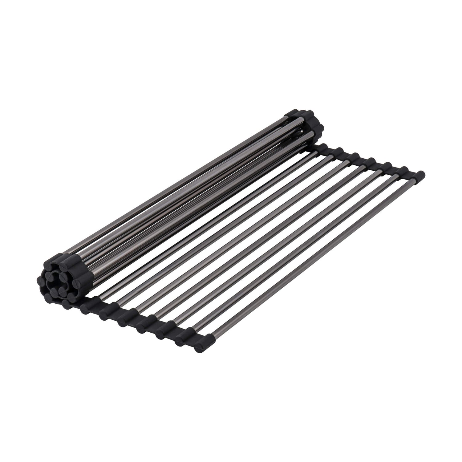 - MATCHING ROLL-UP DRYING RACK: Constructed of stainless steel and flexible silicone ? folds neatly for easy storage and is dishwasher safe.