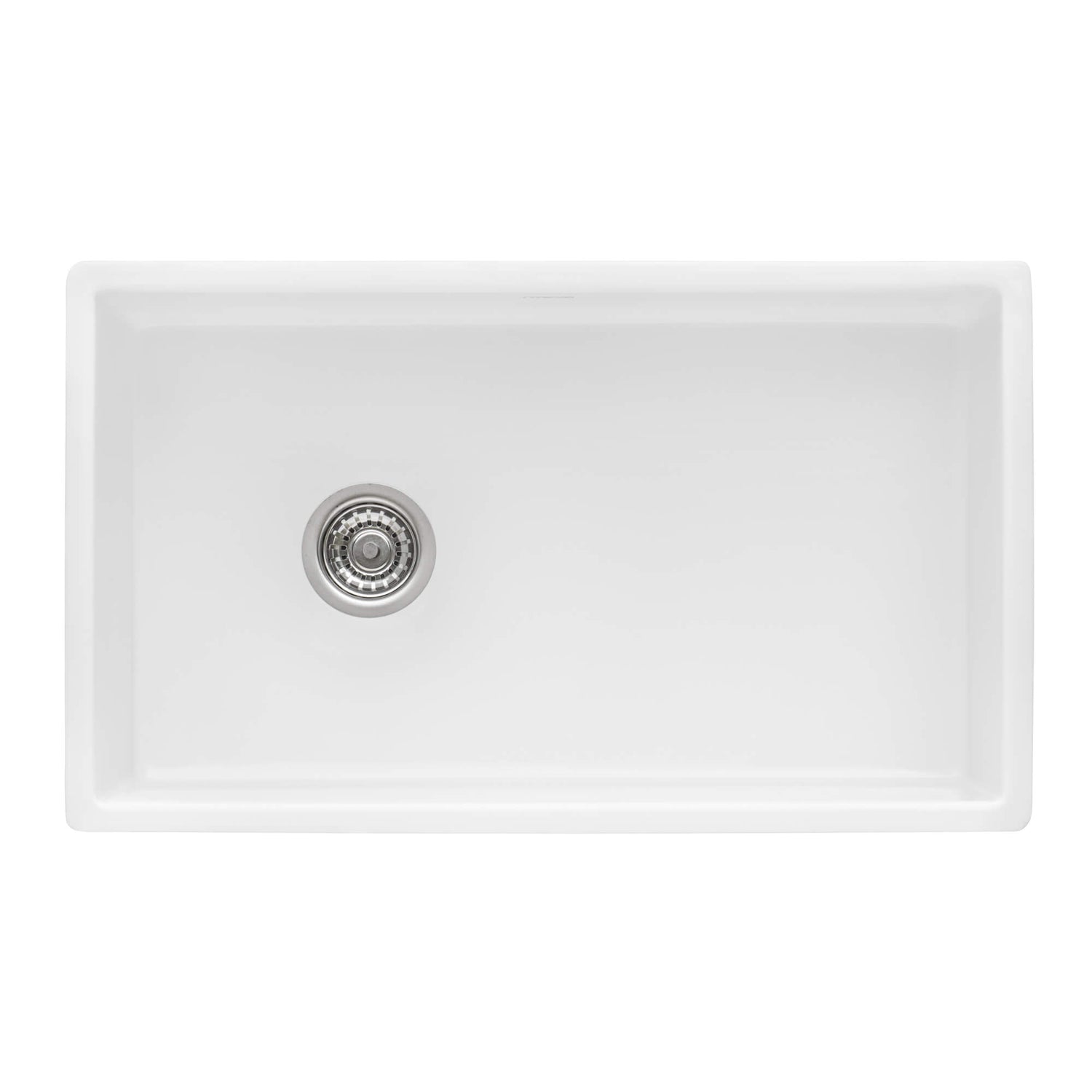- INCLUDED IN BOX: Fireclay sink, bottom rinse grid, drain assembly, installation guide.
