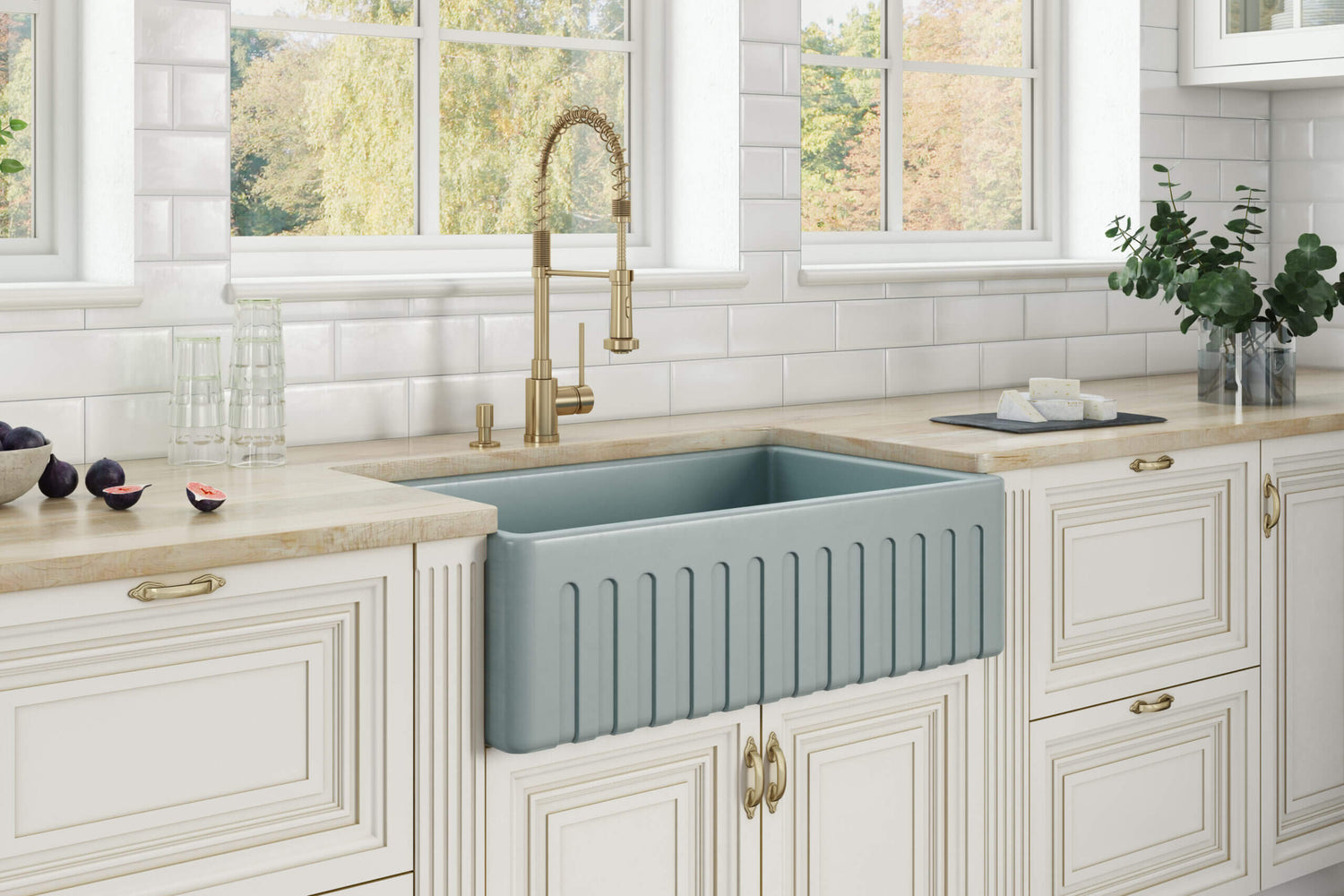 Handcrafted in Italy by skilled artisans that have dedicated generations to mastering their craft, the Fiamma collection from Ruvati features fireclay sinks at the pinnacle of art and form. As Ruvati is one of the few manufacturers to source true fireclay from Italy, Italy is one of the few regions in the world that produces the truly unique material. To ensure precision and durability, the raw white clay is fired at an extremely high temperature of 2900 degrees Fahrenheit as the surface of the sink fuses with the interior. The end result is a powerful finish resistant to chips, cracks, and other abrasions. For over 200 years, fireclay sinks have been celebrated for their strength and practicality in European kitchens and farmhouses. Ruvati's Fiamma collection now delivers this timeless farmhouse classic to the modern American kitchen. With various installation options, including a reversible model that offers a fluted or flat front design, and a range of color choices including black and brushed gold, infused with real 24K gold, there is bound to be a sink in the Fiamma collection to fit your design needs.