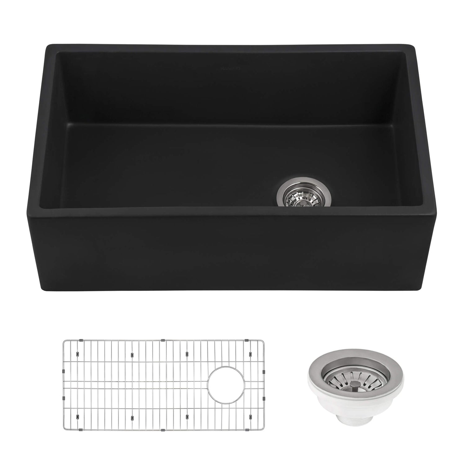 Ruvati 30-inch Matte Black Fireclay Modern Farmhouse Offset Drain Kitchen Sink Single Bowl - RVL4018MBK