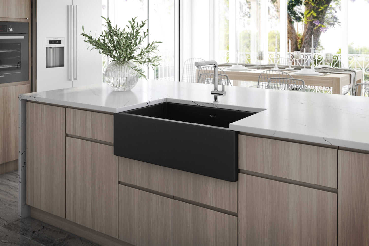 Handcrafted in Italy by skilled artisans that have dedicated generations to mastering their craft, the Fiamma collection from Ruvati features fireclay sinks at the pinnacle of art and form. As Ruvati is one of the few manufacturers to source true fireclay from Italy, Italy is one of the few regions in the world that produces the truly unique material. To ensure precision and durability, the raw white clay is fired at an extremely high temperature of 2900 degrees Fahrenheit as the surface of the sink fuses with the interior. The end result is a powerful finish resistant to chips, cracks, and other abrasions. For over 200 years, fireclay sinks have been celebrated for their strength and practicality in European kitchens and farmhouses. Ruvati's Fiamma collection now delivers this timeless farmhouse classic to the modern American kitchen. With various installation options, including a reversible model that offers a fluted or flat front design, and a range of color choices including black and brushed gold, infused with real 24K gold, there is bound to be a sink in the Fiamma collection to fit your design needs.