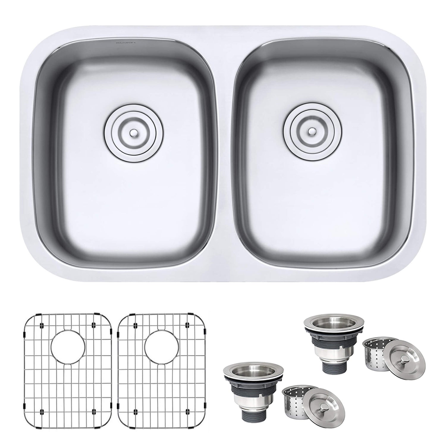 Ruvati 29-inch Undermount 50/50 Double Bowl 16 Gauge Stainless Steel Kitchen Sink - RVM4301