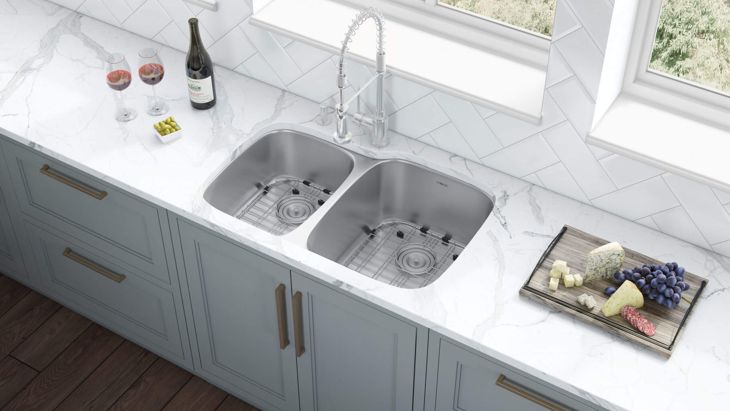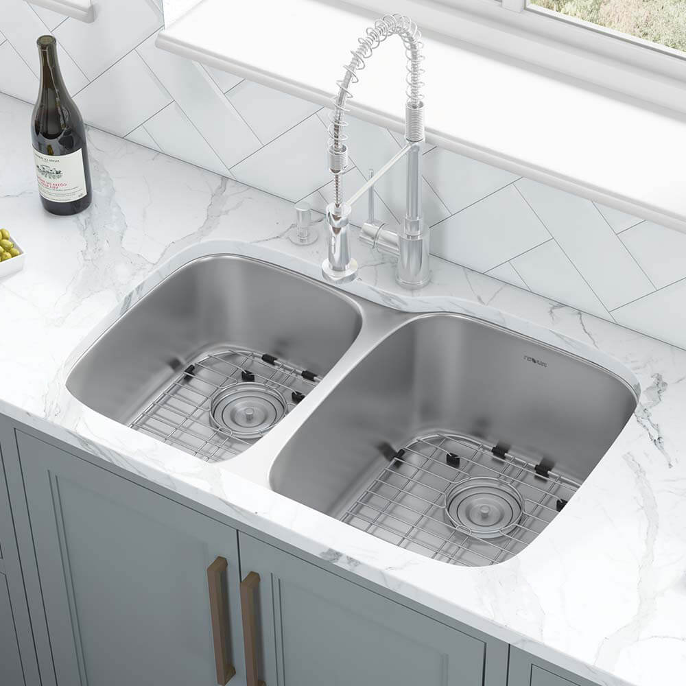 - LARGE DOUBLE BOWL: 32-inch sink gives you plenty of usable space.