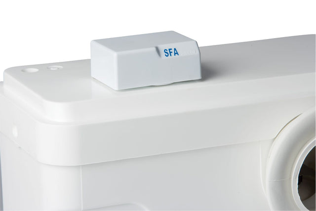 The Saniflo Sanialarm has a level pressure switch that triggers an alarm fixed on the top of the unit if the volume of water exceeds the maximum allowed level. The alarm emits a continuous 80 dB warning sound until it is switched off or the problem is rectified.