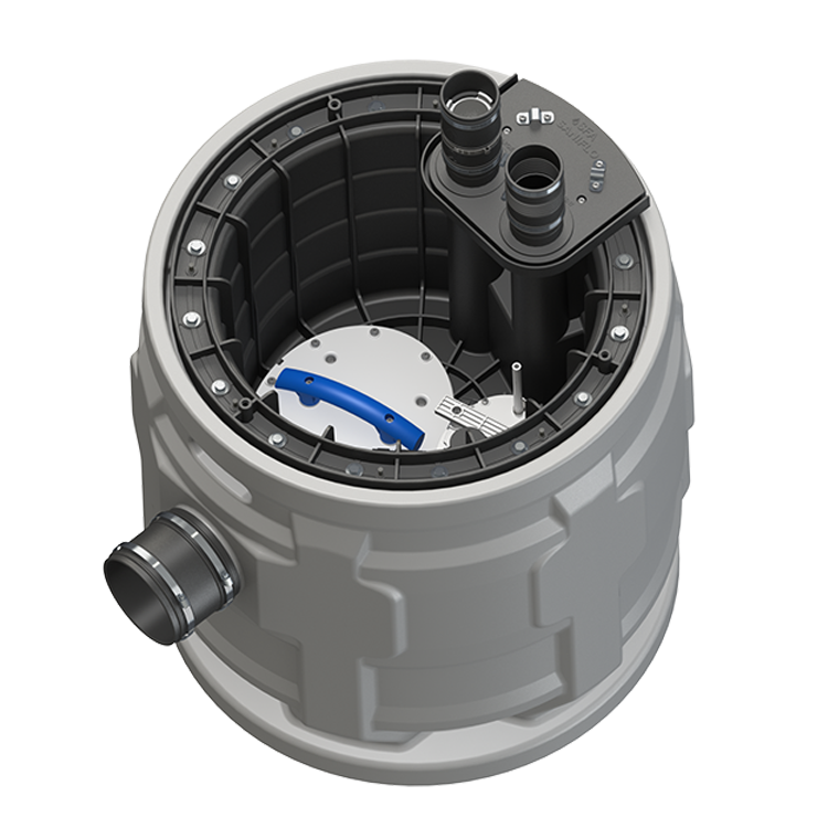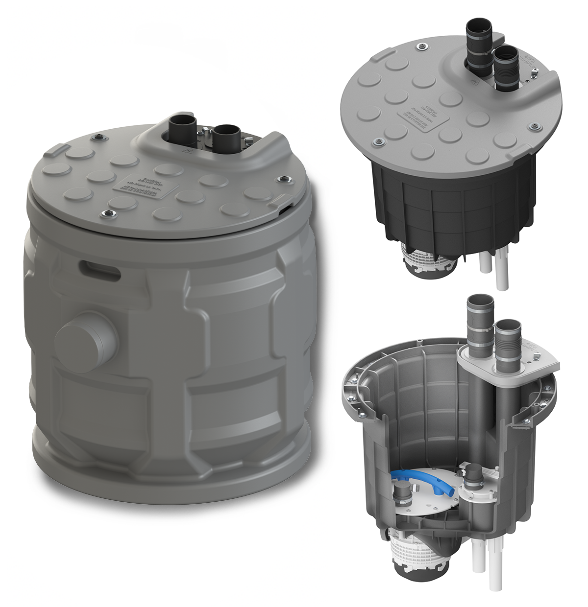 - Pre-assembled heavy-duty 24” basin w/ grinder pump for new installations