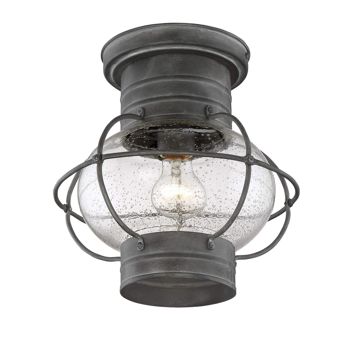 Bring a nautical flair outdoors with the Savoy House Enfield 1-light outdoor ceiling flush mount. Its seaside style showcases a sleek cage protecting the clear seeded glass shade. Oxidized black finish.