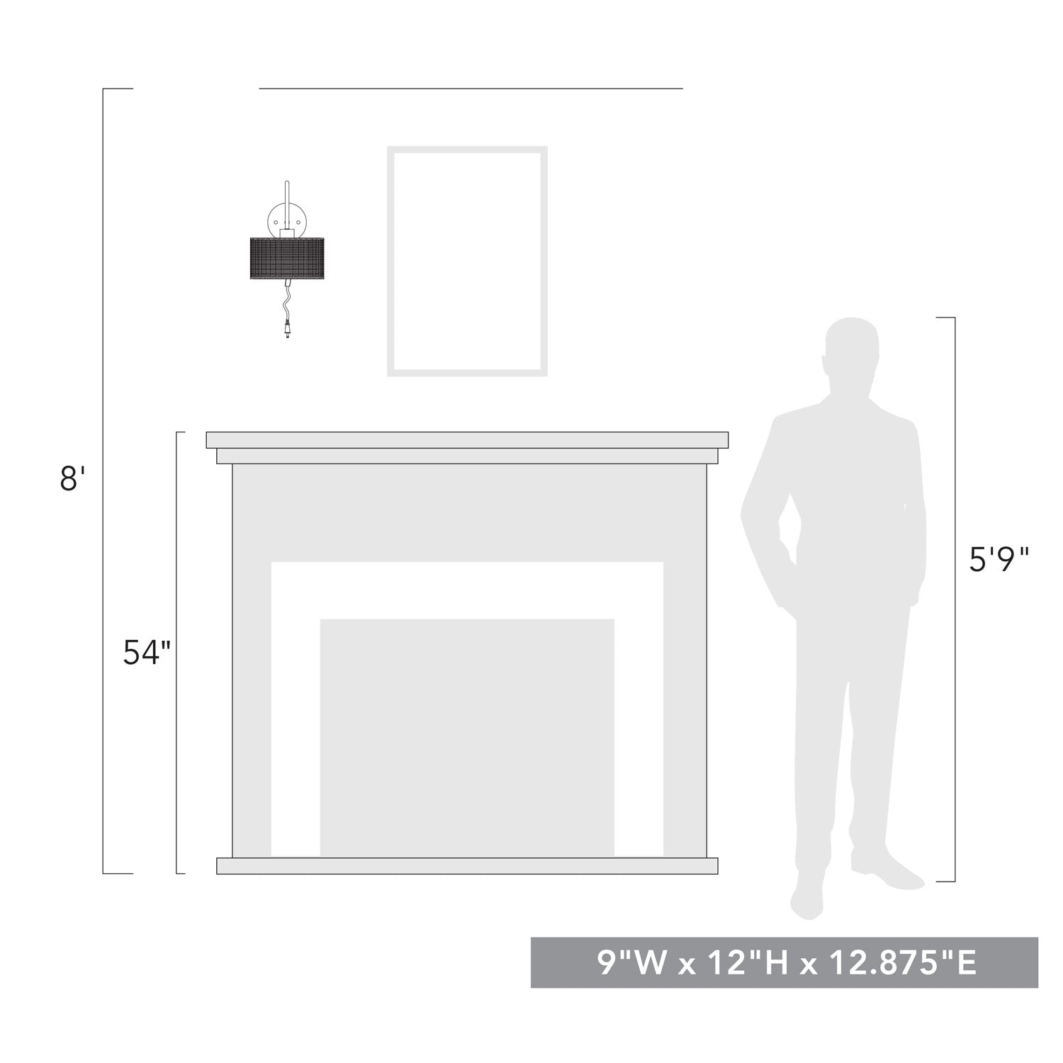 Erma 1 Light Wall Sconce in Matte Black with Black Wicker Shade