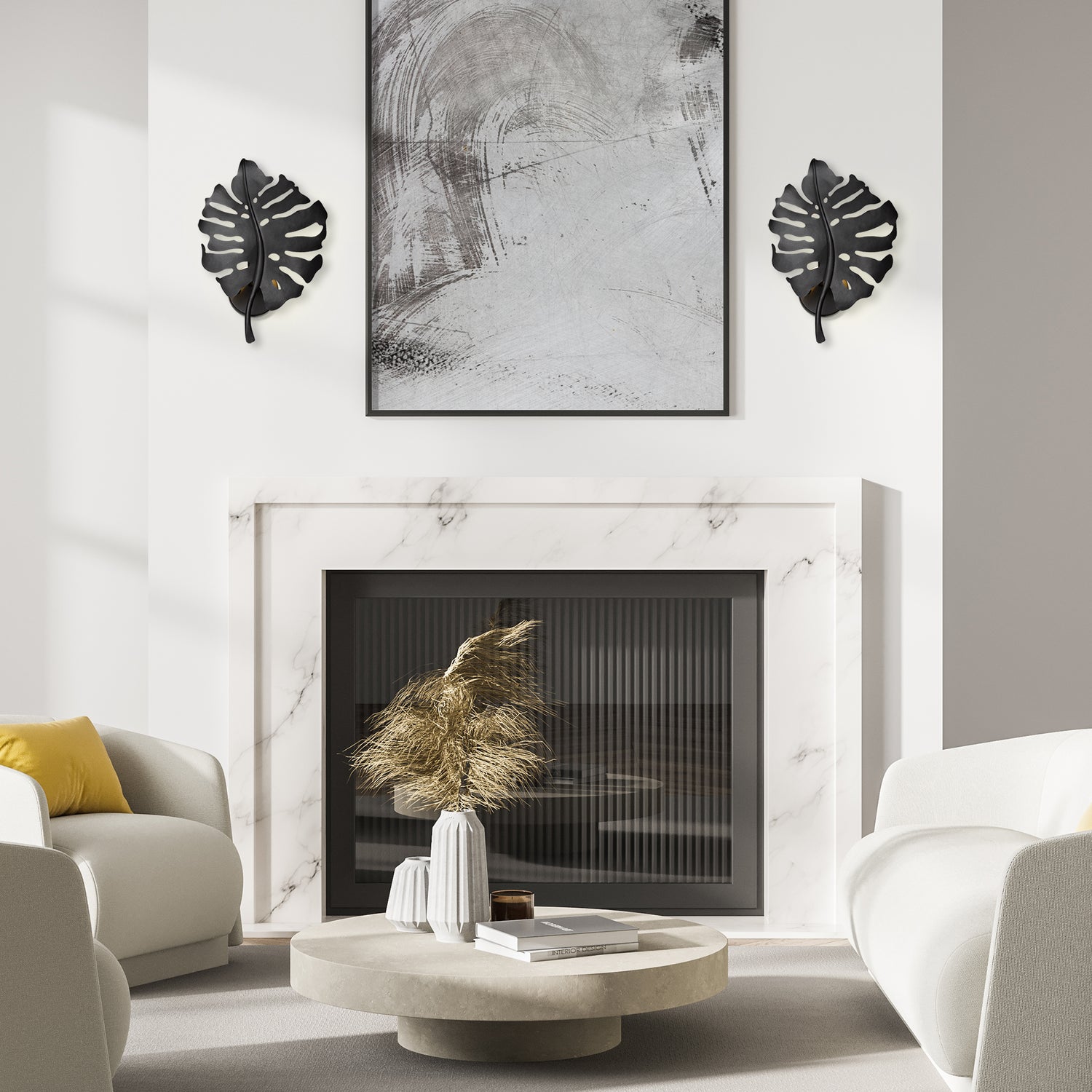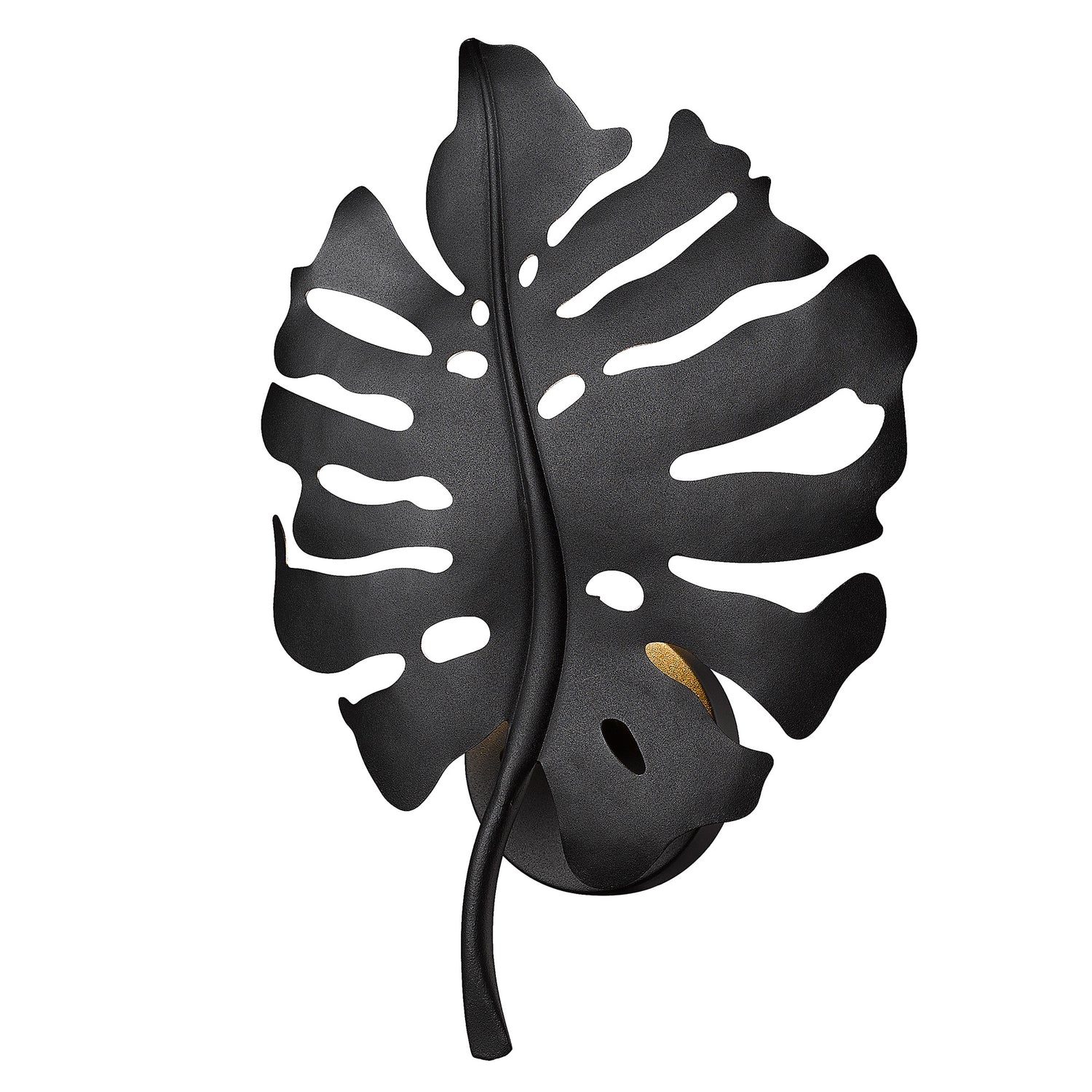 Aruba's modern design suits contemporary spaces. Inspired by nature, this metal Monstera leaf series leaves a lasting impression. An exposed bulb sits behind the large, dramatic leaf. With carefully chosen cutouts, the sconces are pieces of decorative wall art. Aruba is available in a selection of sophisticated finishes.