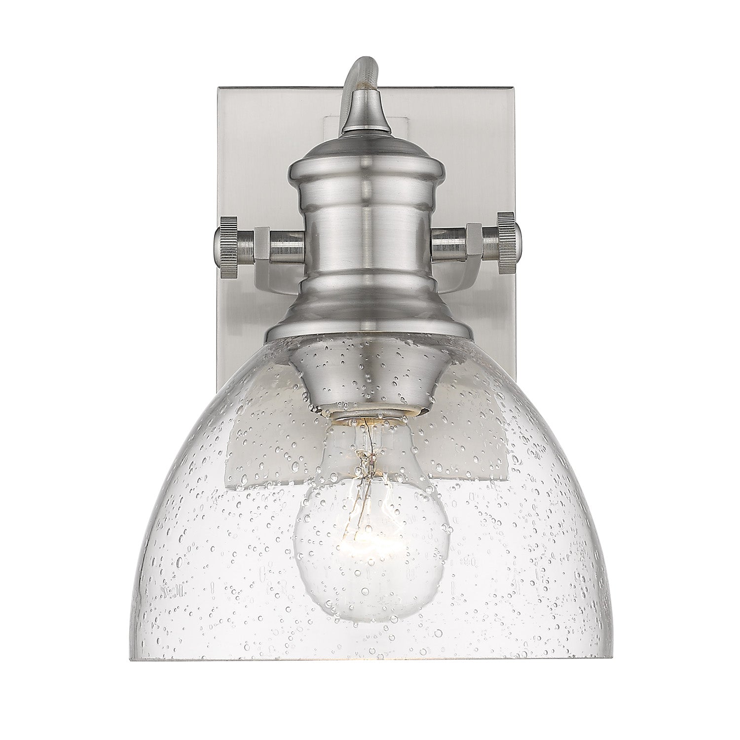 Hines 1-Light Bath Vanity in Pewter with Seeded Glass