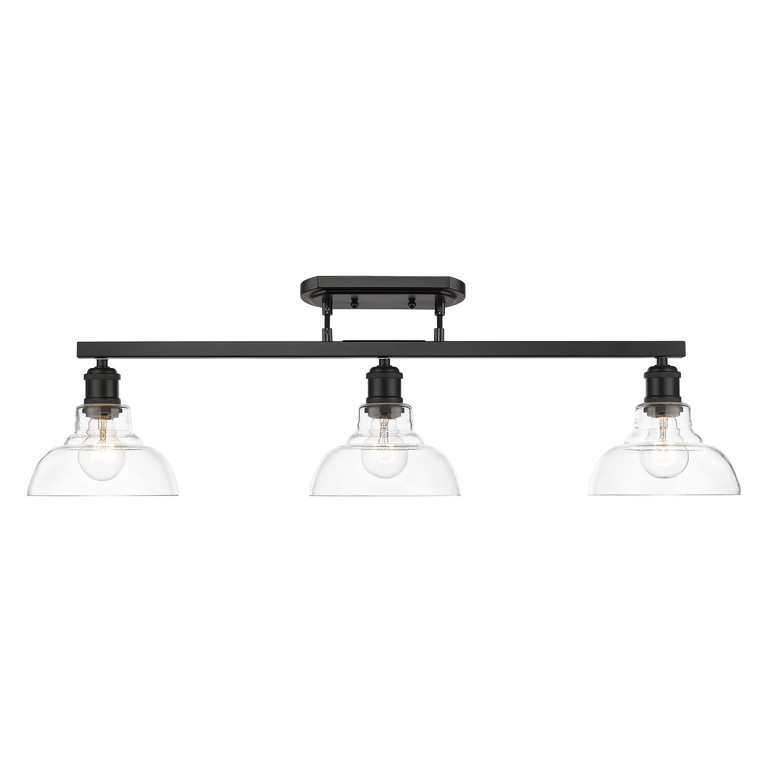 This cool, industrial design is perfect for transitional to modern decors. The sleek finishes and choice glass options create an array of bright, stylish fixtures. Safety-rated for damp locations, it is ready for any room. Enhance your home's contemporary style with the beautiful details of the Carver Collection. This 3 light semi-flush is perfect for foyers, living rooms, and hallways.