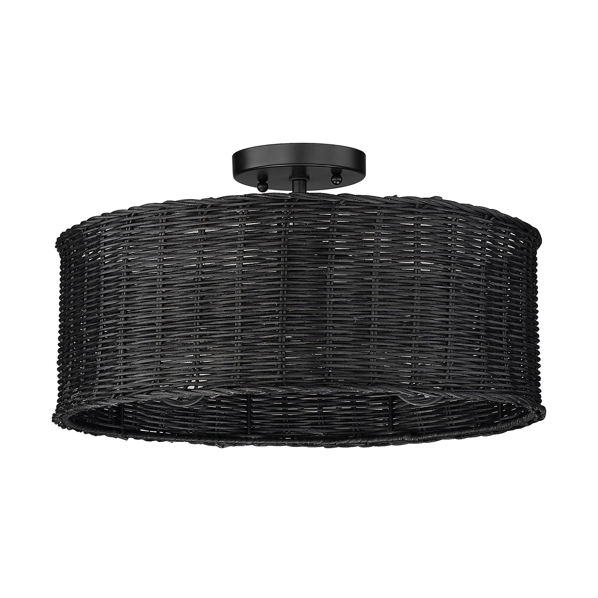 Erma 3 Light Semi-Flush in Matte Black with Black Wicker Shade