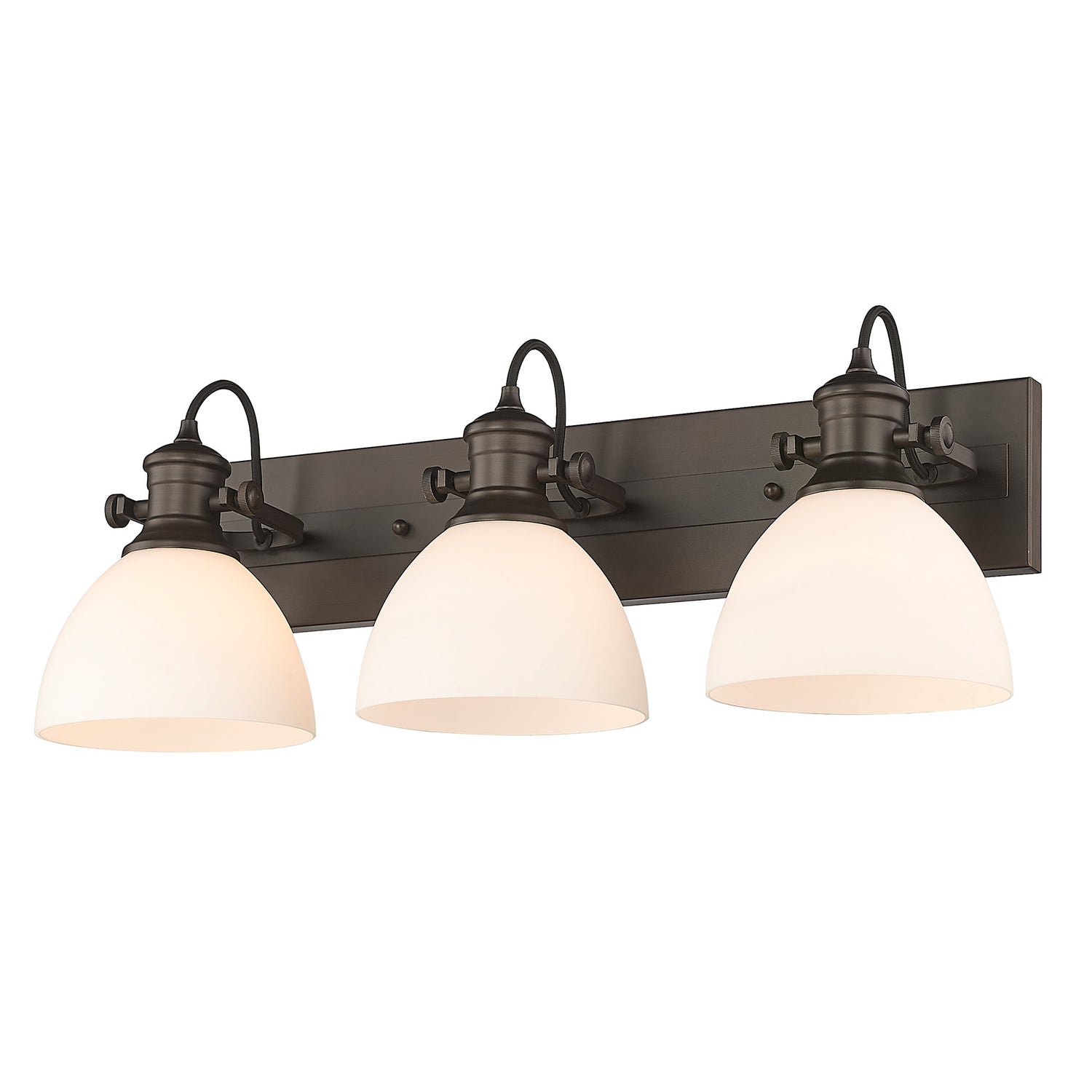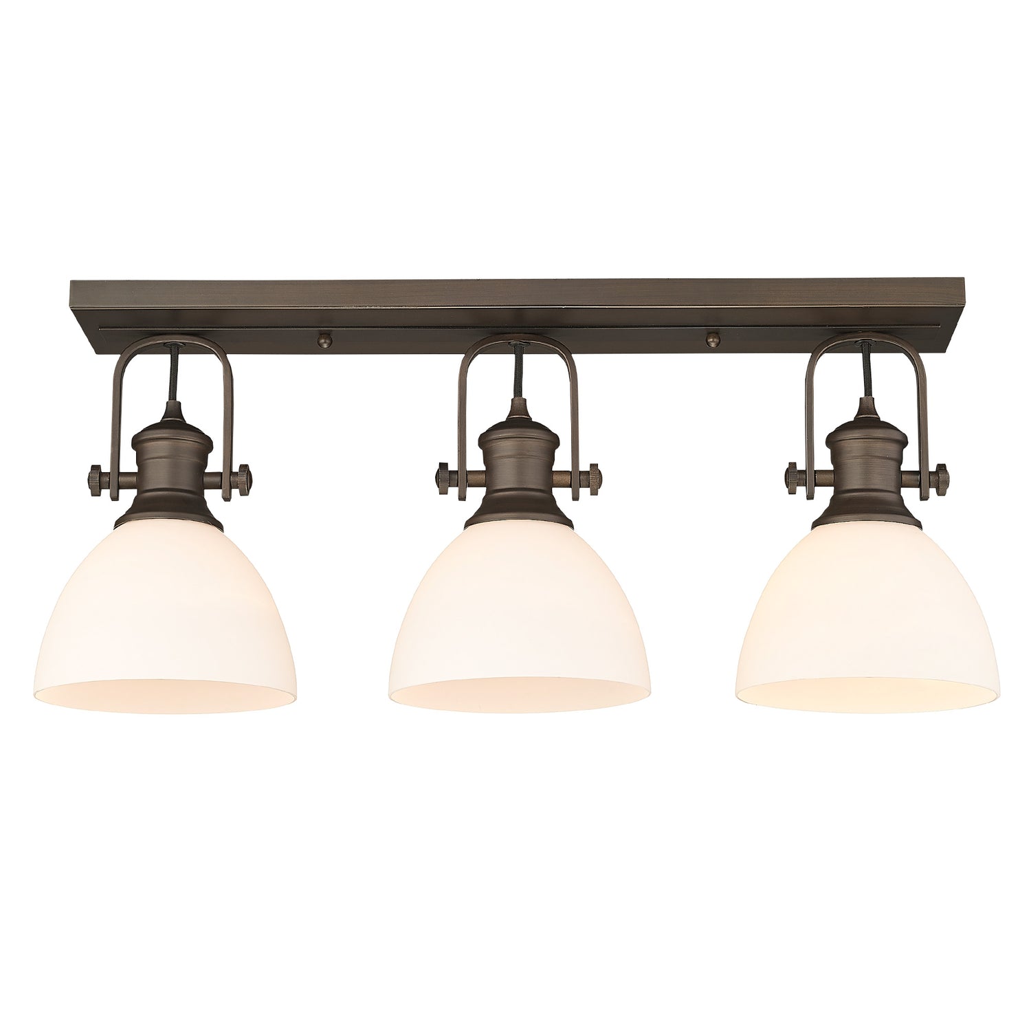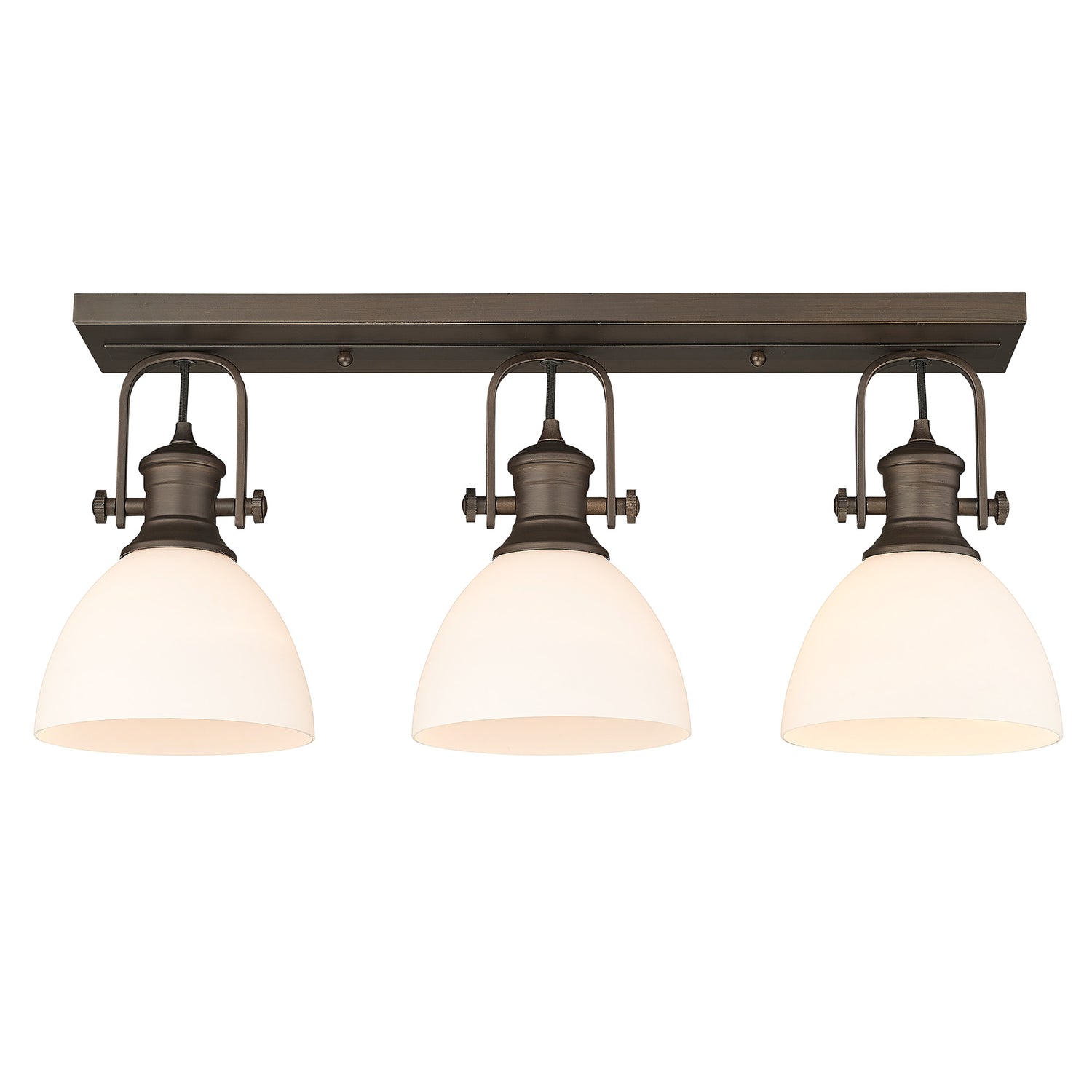 Hines 3-Light Semi-Flush in Rubbed Bronze with Opal Glass