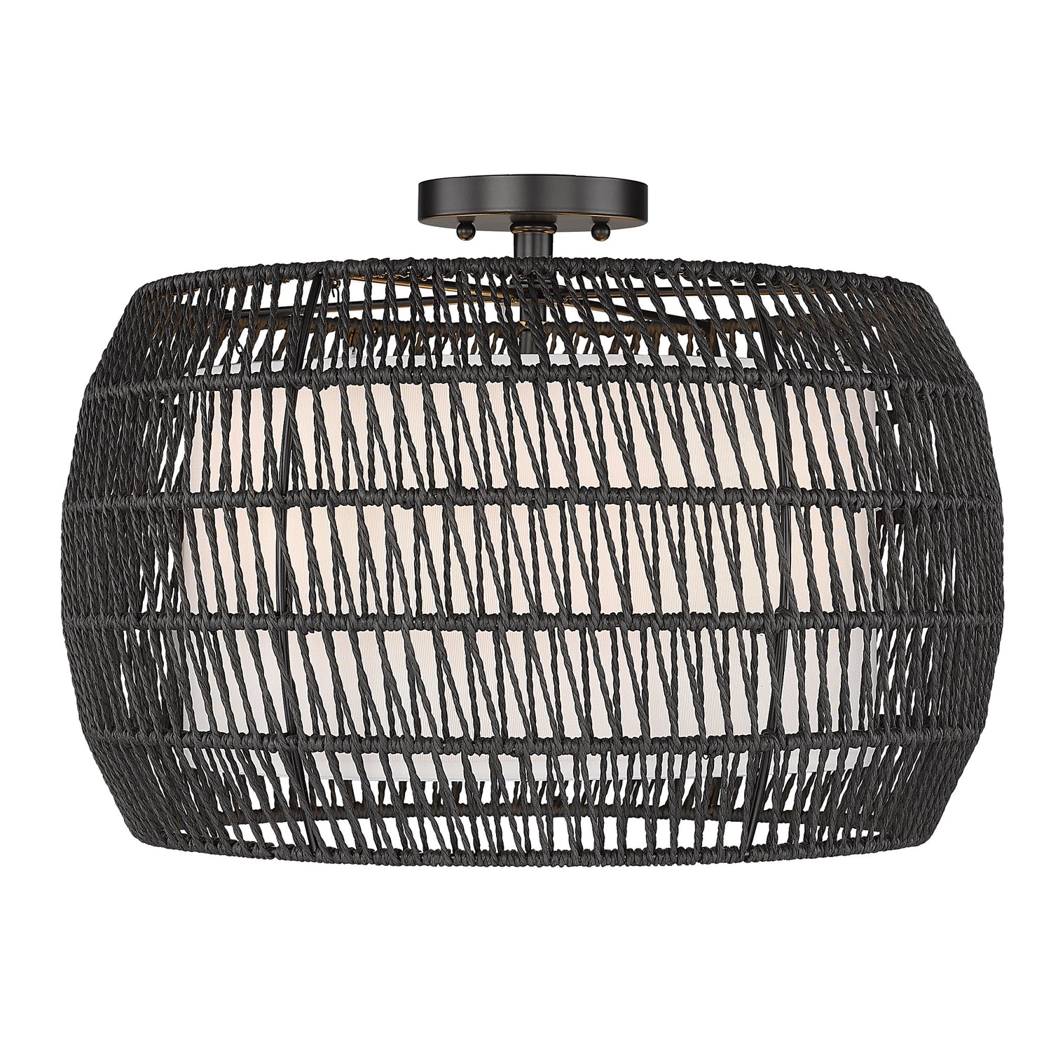 Everly 4 Light Semi-Flush in Matte Black with Modern Black Rattan Shade