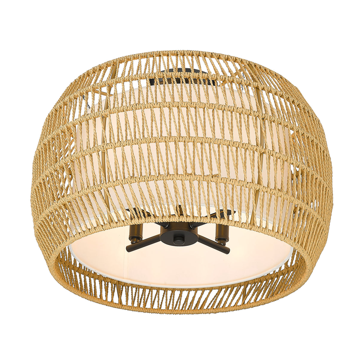 Everly 4 Light Semi-Flush in Matte Black with Natural Rattan Shade