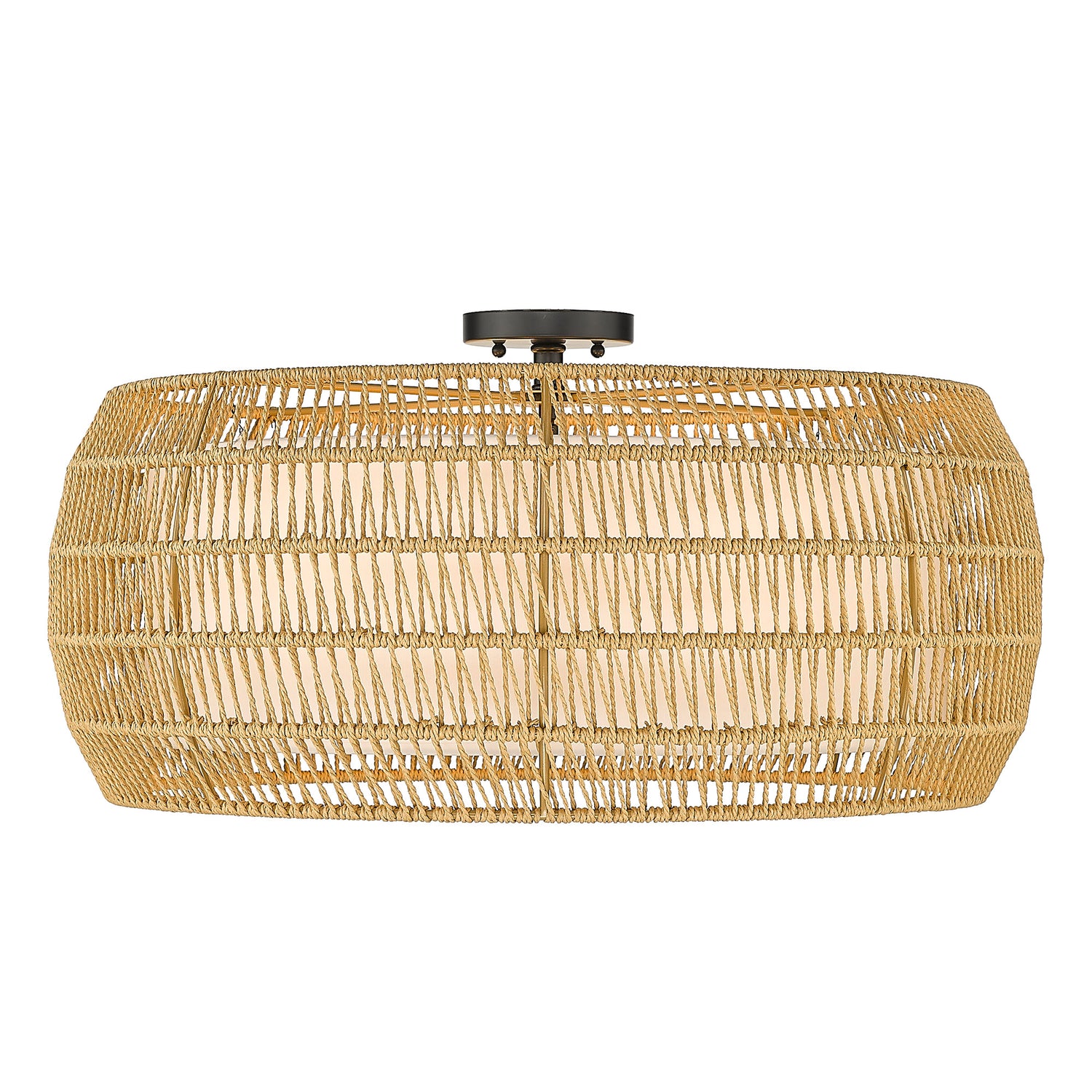 Everly 6 Light Semi-Flush in Matte Black with Natural Rattan Shade