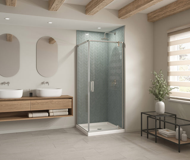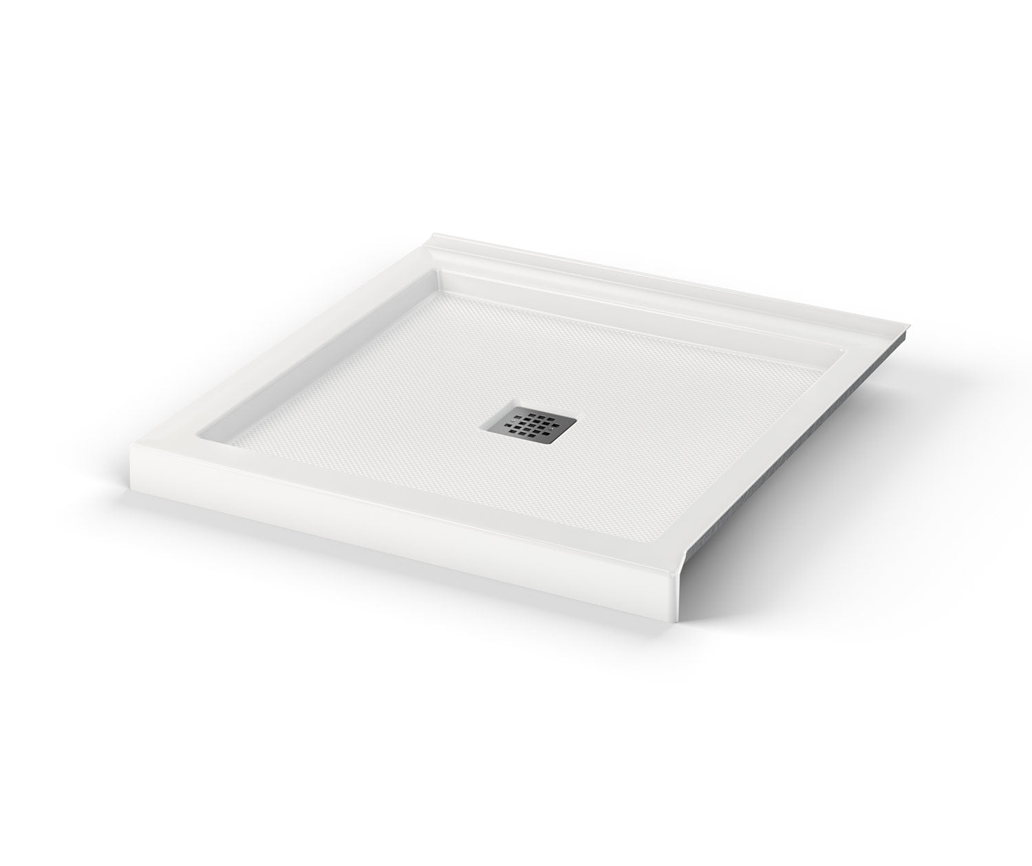 MAAX 420000-540-001-100 B3Square 3636 Acrylic Corner Left or Right Shower Base in White with Anti-slip Bottom with Center Drain