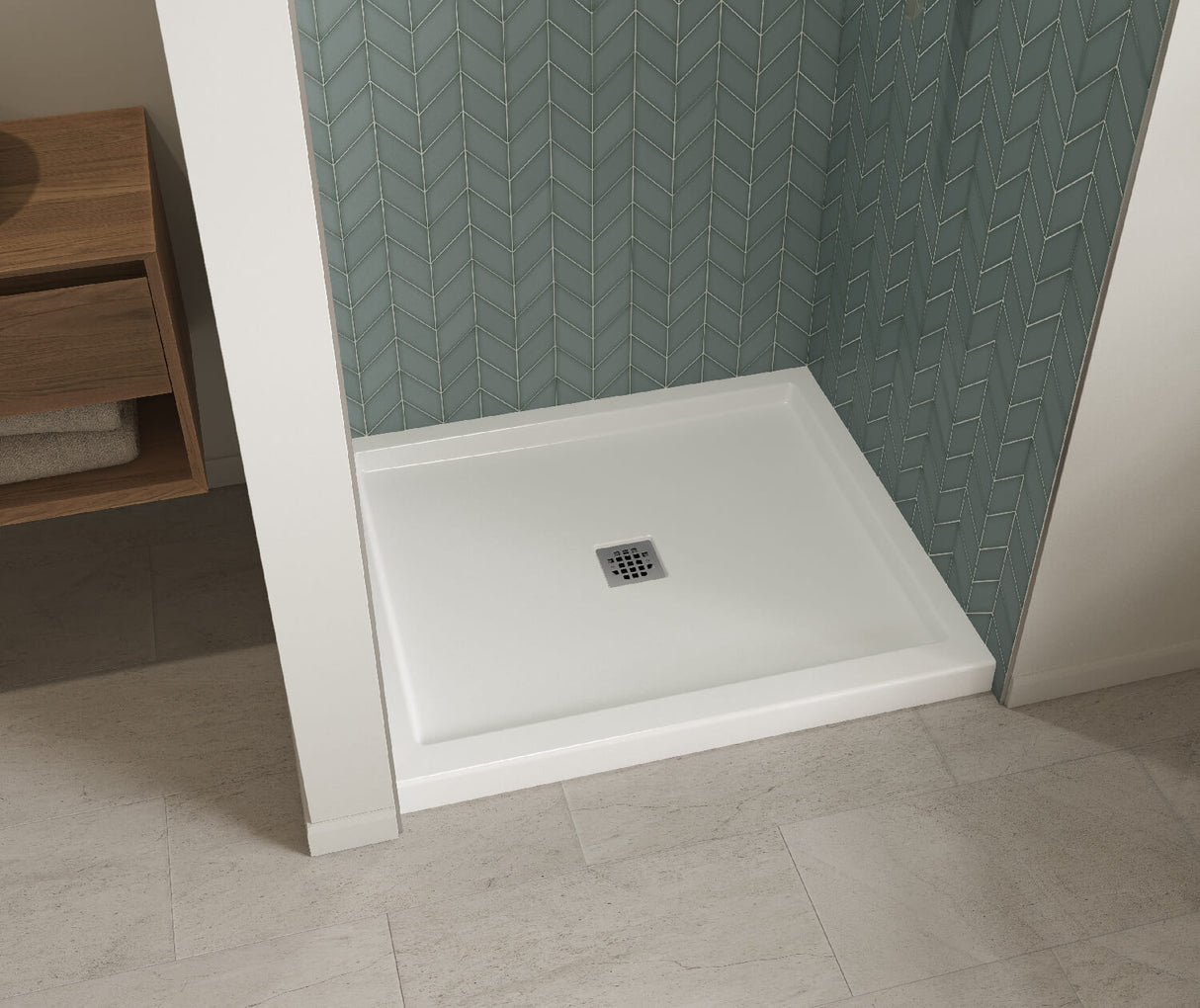 MAAX 420034-501-001-100 B3Square 4236 Acrylic Alcove Shower Base in White with Center Drain