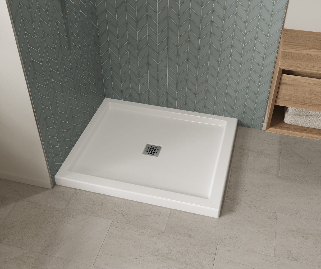 MAAX 420034-502-001-100 B3Square 4236 Acrylic Corner Left Shower Base in White with Center Drain