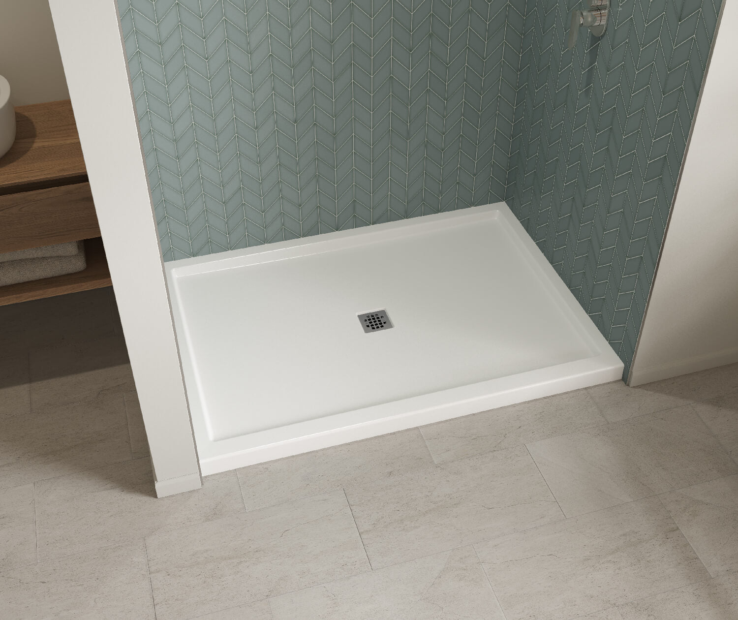 MAAX 420036-501-001-100 B3Square 6042 Acrylic Alcove Shower Base in White with Center Drain
