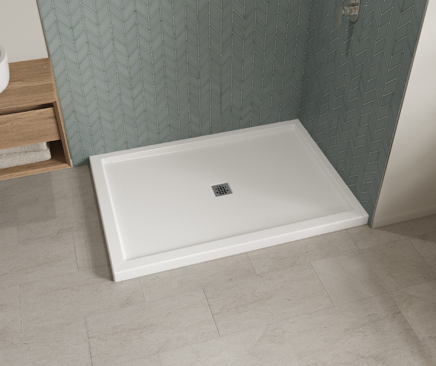 MAAX 420036-503-001-100 B3Square 6042 Acrylic Corner Right Shower Base in White with Center Drain
